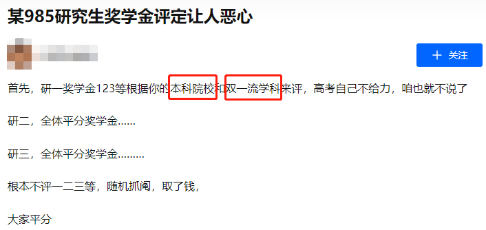 有网友提出,某985高校研究生奖学金评定规则让人恶心: