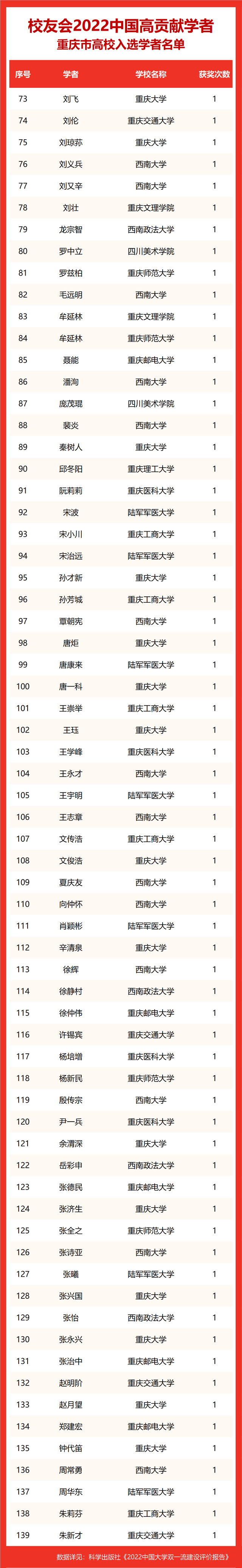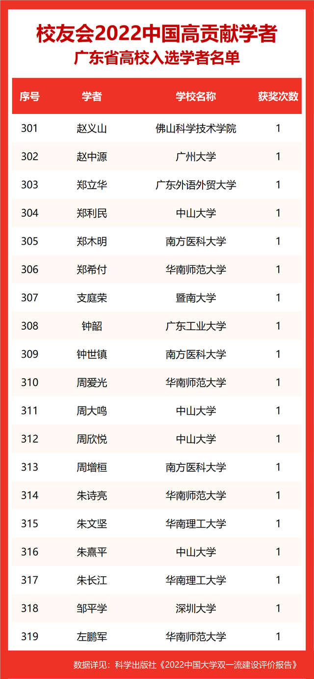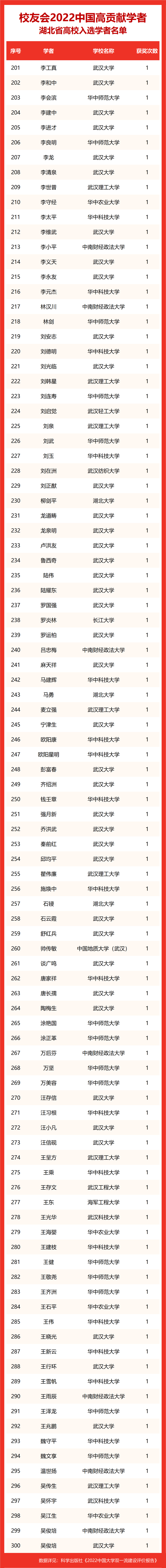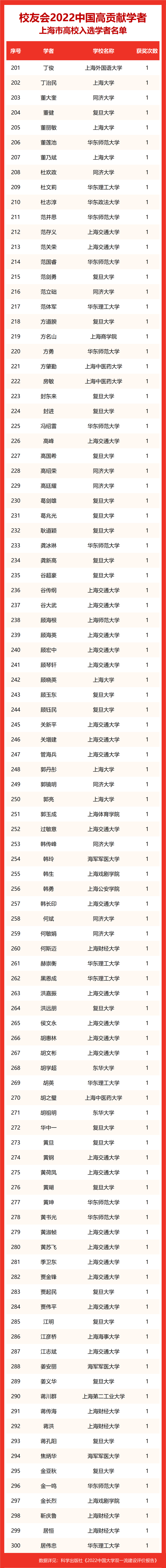 校友会2022中国高贡献学者遴选突出评价学者的教育教学水平、学术研究水平、创新质量和实际社会贡献,选择国家教学成果奖、国家科学技术奖励、教育部人文社会科学奖励、中宣部五个一工程奖、中国专利奖等12项社会各界公认权威主流、具有标志性代表性的指标作为评价标准,遴选标准科学客观统一,指标统计时间为2000-2021年。