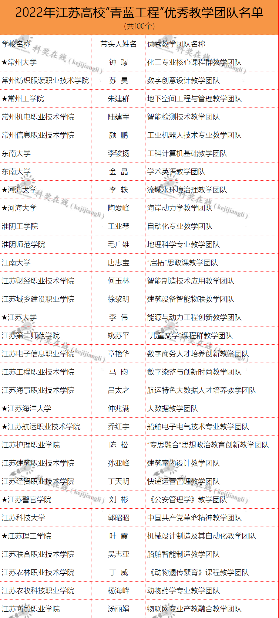 2022年江苏高校“青蓝工程”培养对象名单公示