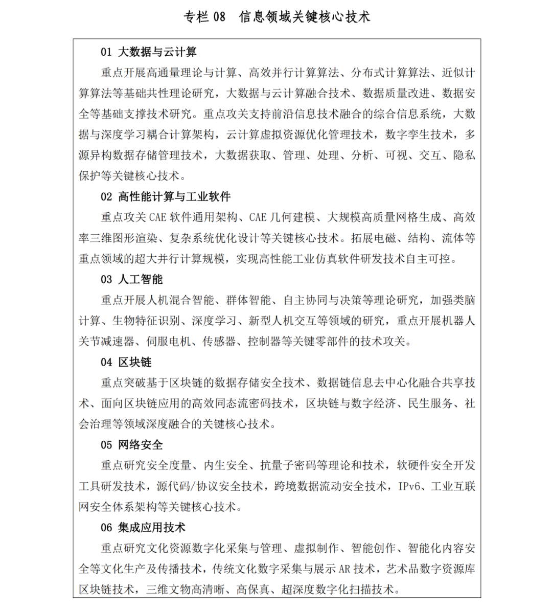 重点发展领域方向