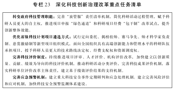 ——创新协同效能更大提高。科技创新体制机制障碍有效破除,企业、高校、科研院所等创新主体活力充分激发,产学研深度融合的技术创新体系更加健全,创新治理能力和效率明显提升。