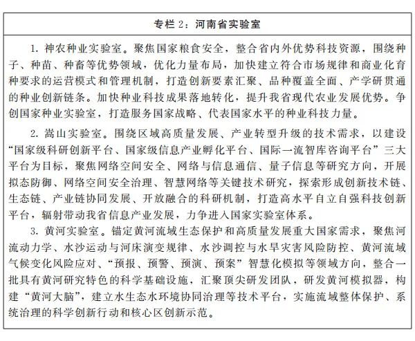 ——战略科技力量加速壮大。创建1个国家实验室(基地或分支机构),新建5个国家重点实验室,建设7个重大科技基础设施,新增5所左右达到国家“双一流”建设水平高校,重建重振省科学院取得显著成效。构建以国家实验室、高水平科研机构、研究型大学、科技领军企业为重要组成部分的国家战略科技力量河南梯队。