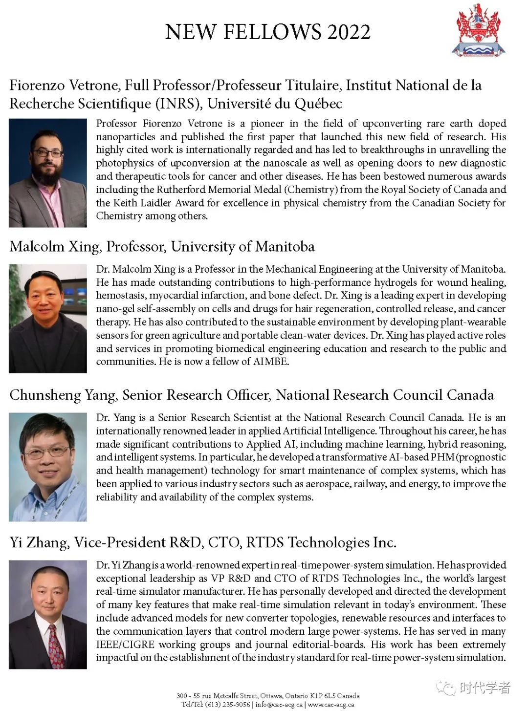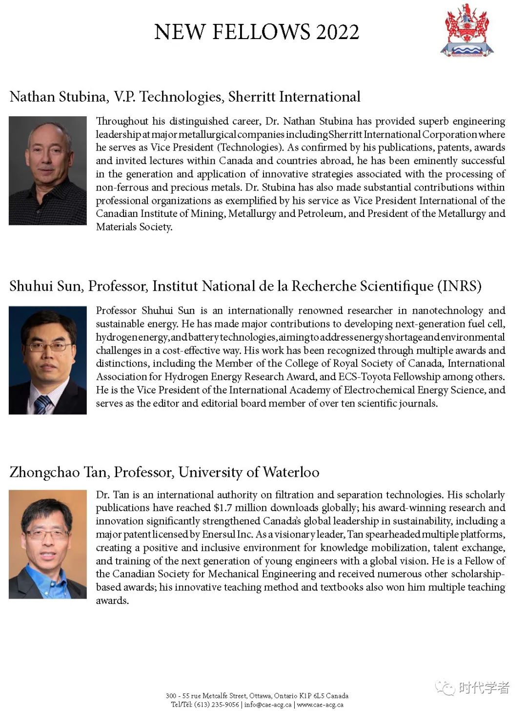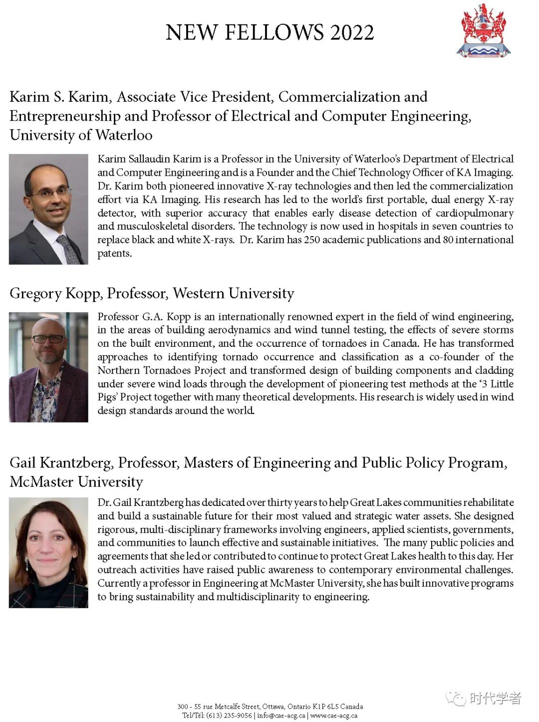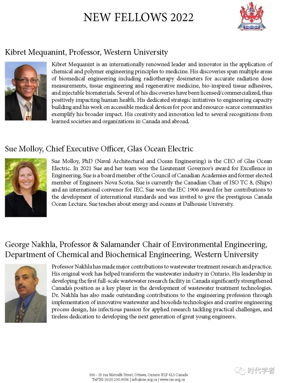加拿大工程院(The Canadian Academy of Engineering)成立于1987年,是一个独立、自治的非盈利组织,入选人员由同行提名和选举产生,主要标准是参选者在研究领域的杰出成就和在工程专业上的长期服务。