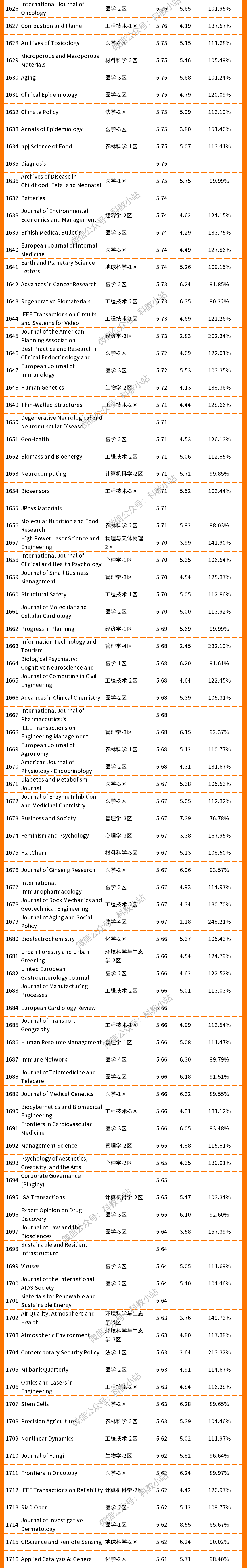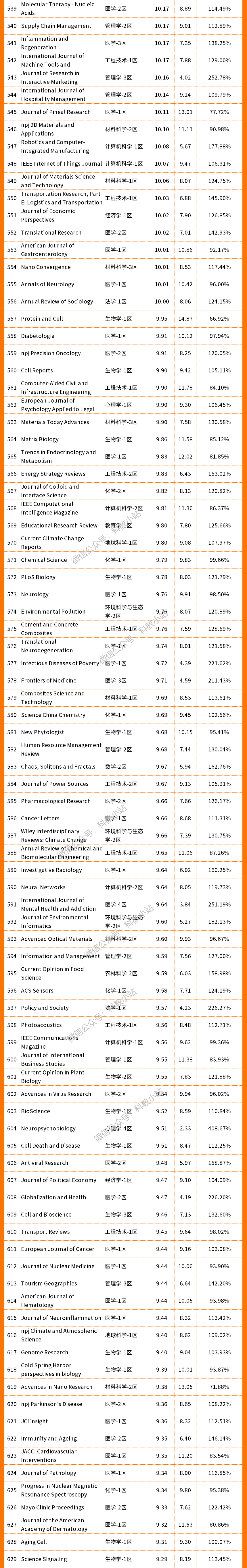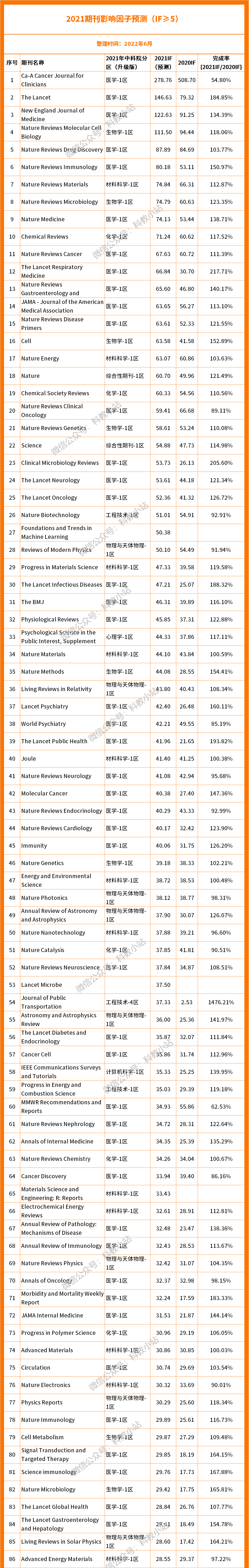 最新!2021年度SCI期刊影响因子预测(IF≥5)