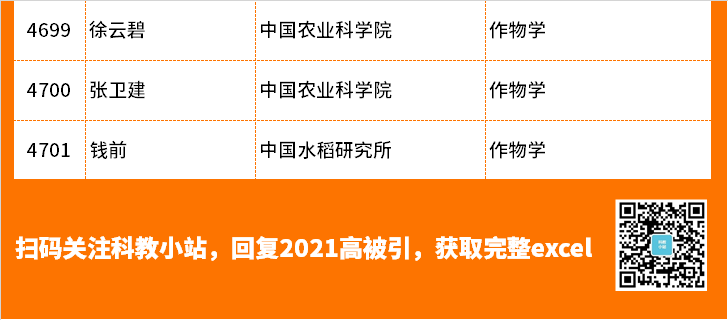 4月14日,爱思唯尔(Elsevier)正式发布了2021“中国高被引学者”(Highly Cited Chinese Researchers)榜单,最终得到4701名各学科最具全球影响力的中国学者。