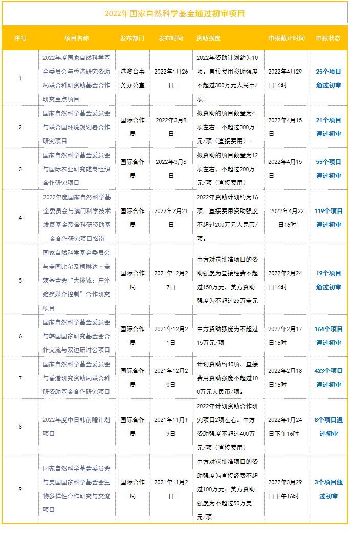 近日,2022年国家自然科学基金部分项目申报指南已陆续发布。据不完全统计,截至目前2022年国家自然科学基金已发布69个项目的申报指南,其中9个项目通过初审,4个项目已发布获资助批准通知。