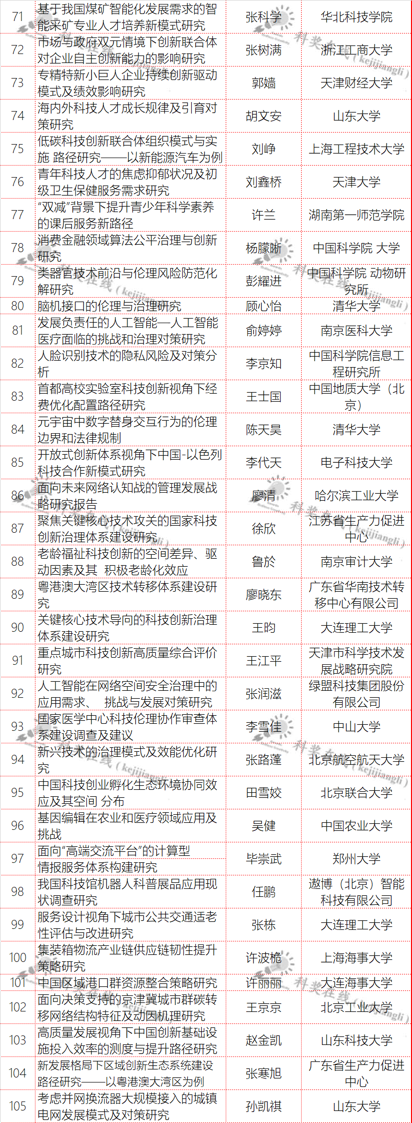 2022年3月31日,中国科协战略发展部发布了《关于申报2022年度科技智库青年人才计划的通知》,广大青年科技人员积极踊跃申报。根据中国科协项目管理有关规定,经形式审查、专家匿名评审以及有关审批等程序,共评选出425人。