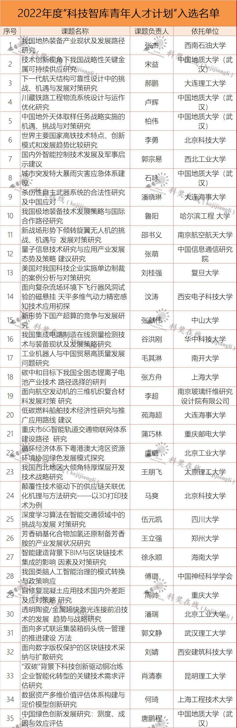 中国科协战略发展部关于2022年度科技智库青年人才计划结果