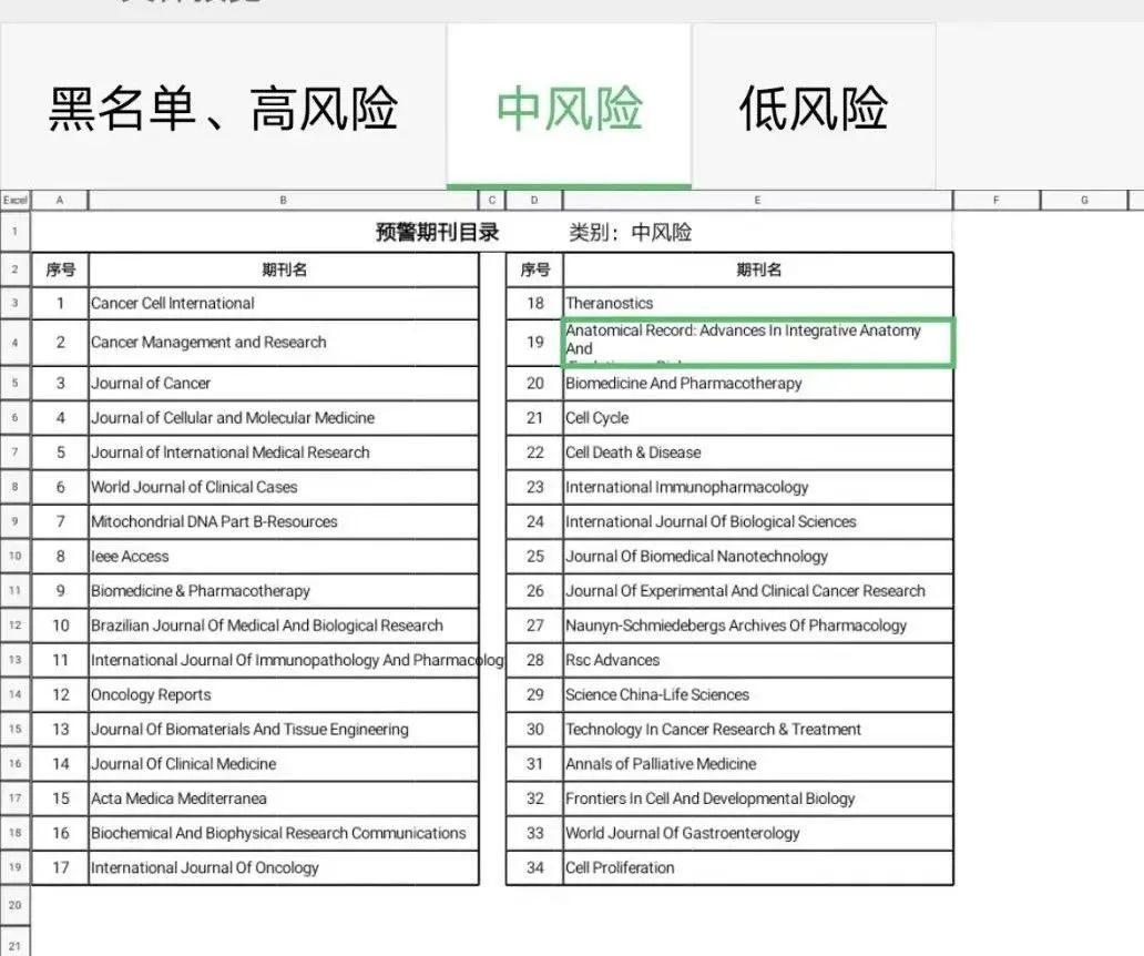 近日,上海某医院,公布了史上最严期刊黑名单。最新期刊黑名单,名单分为高风险,中风险,低风险三档,总共157本期刊被纳入黑名单,包括41分的Molecular Cancer,以及多本10分+的期刊。