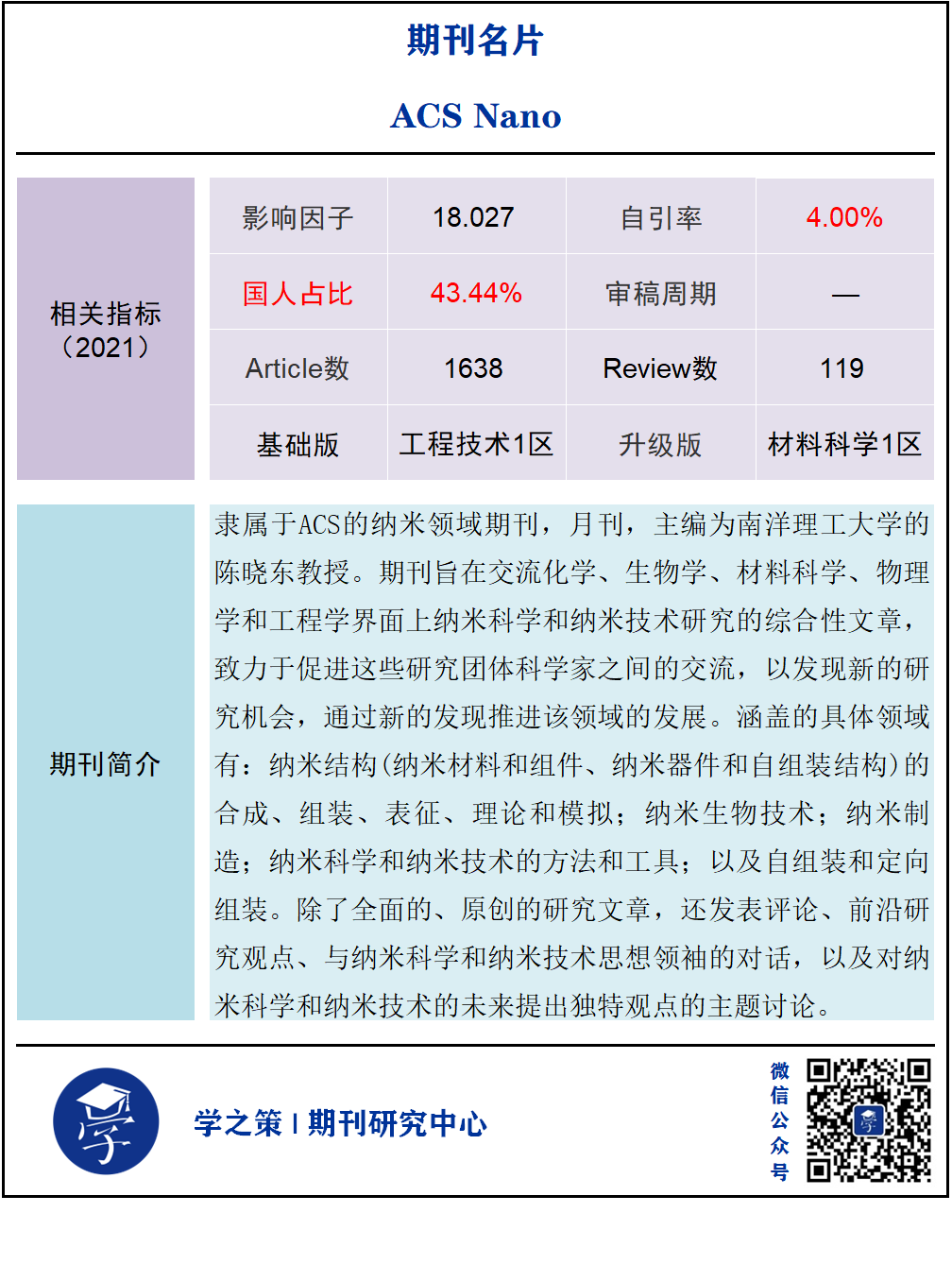 ACS Nano是ACS旗下的知名纳米材料类期刊。