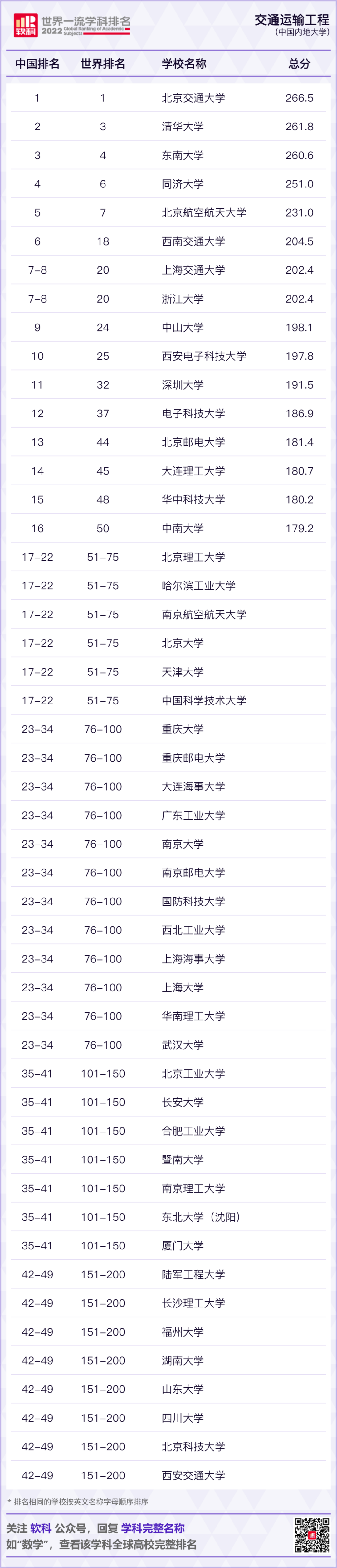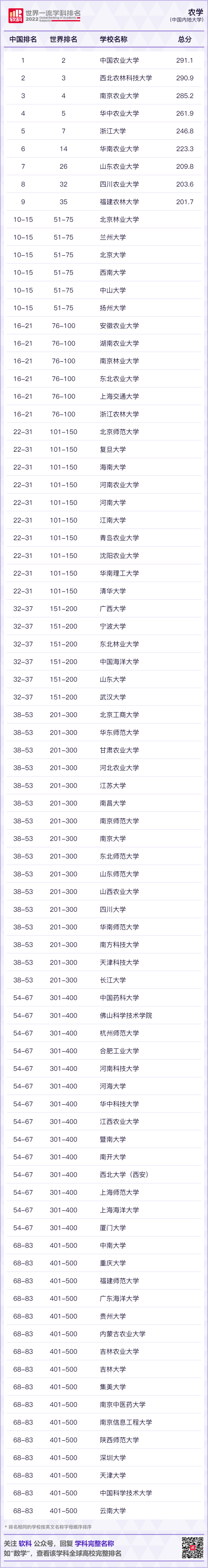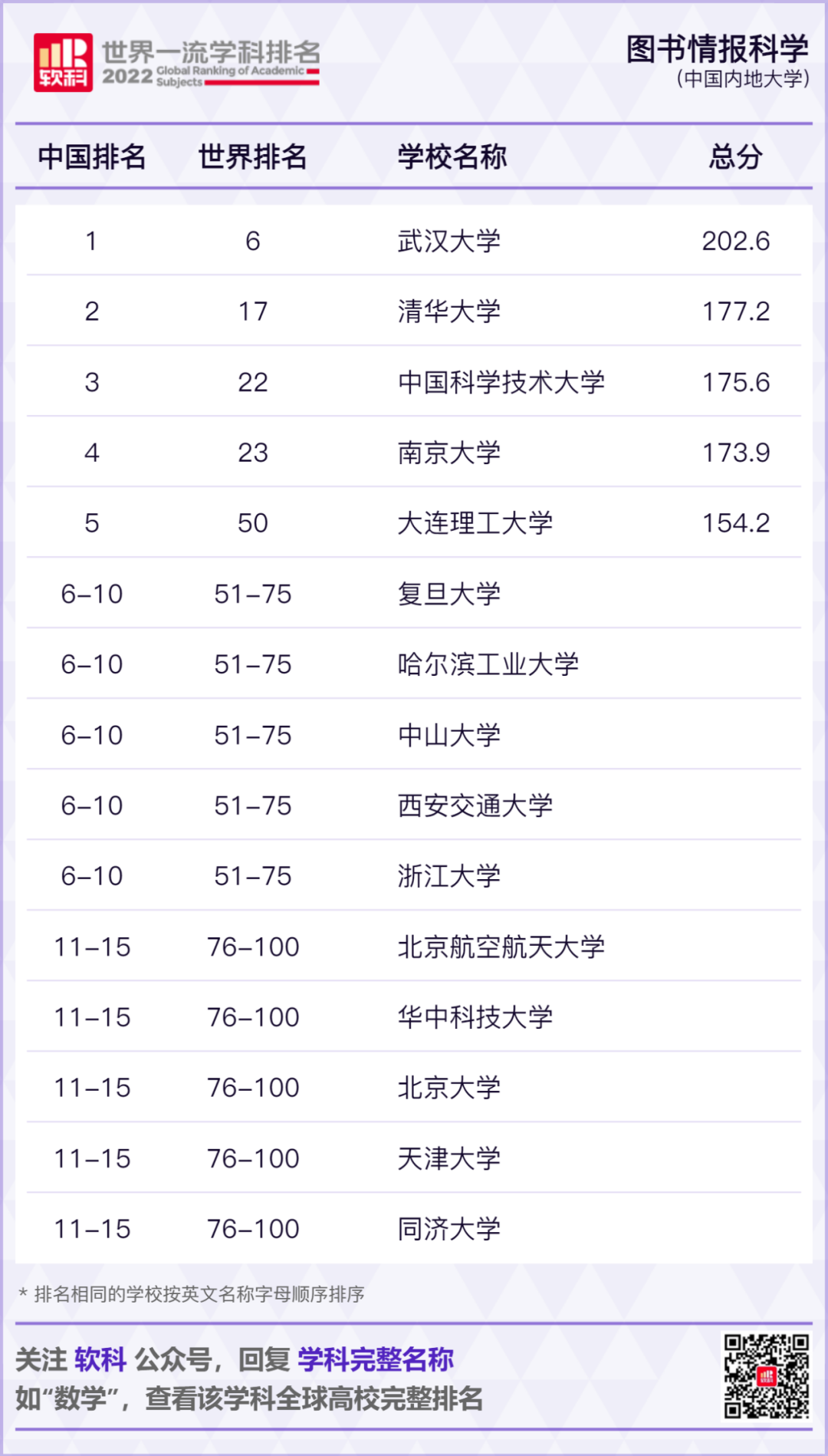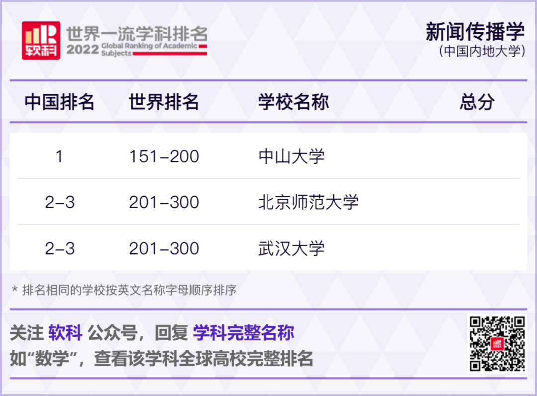 2022软科世界一流学科排名发布!