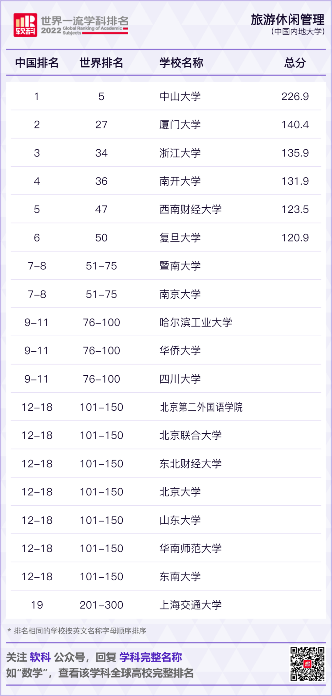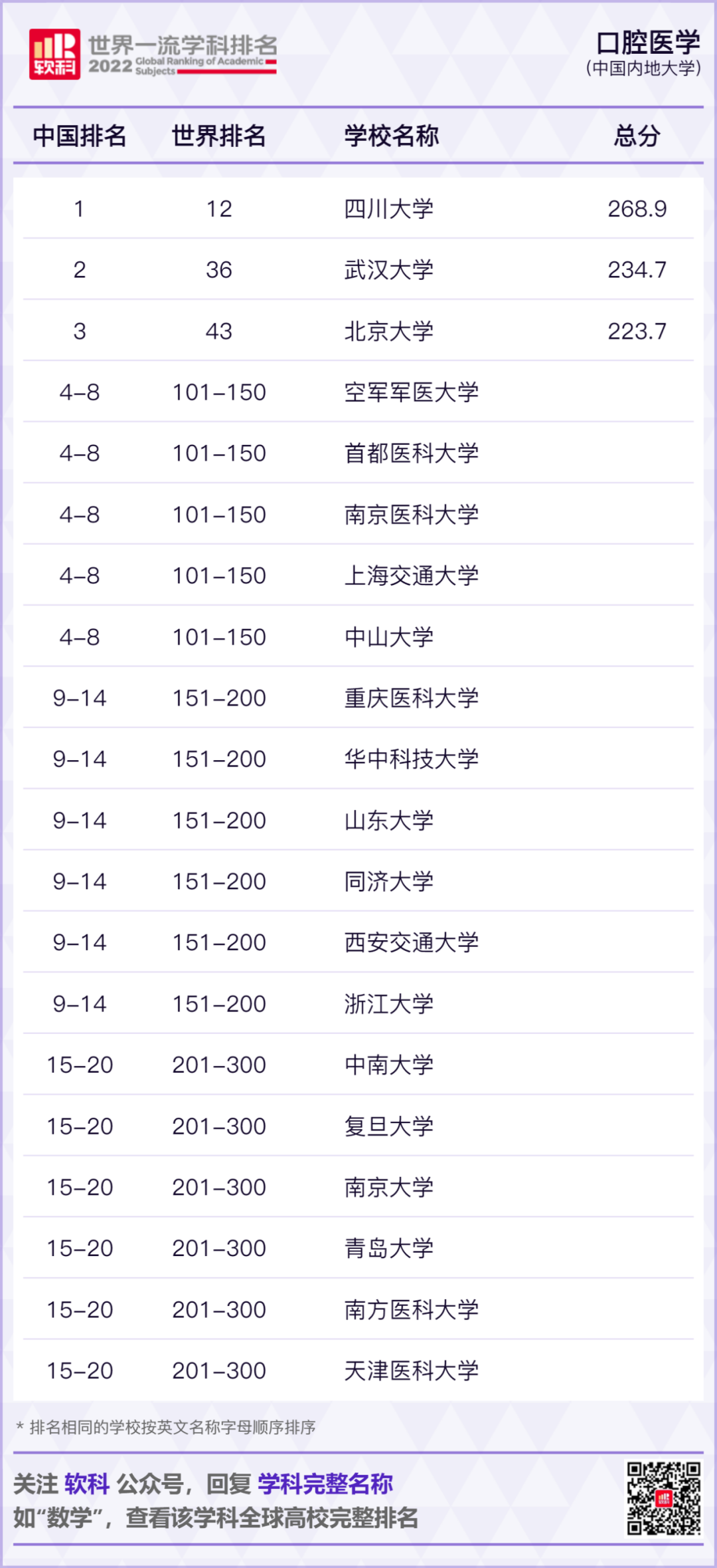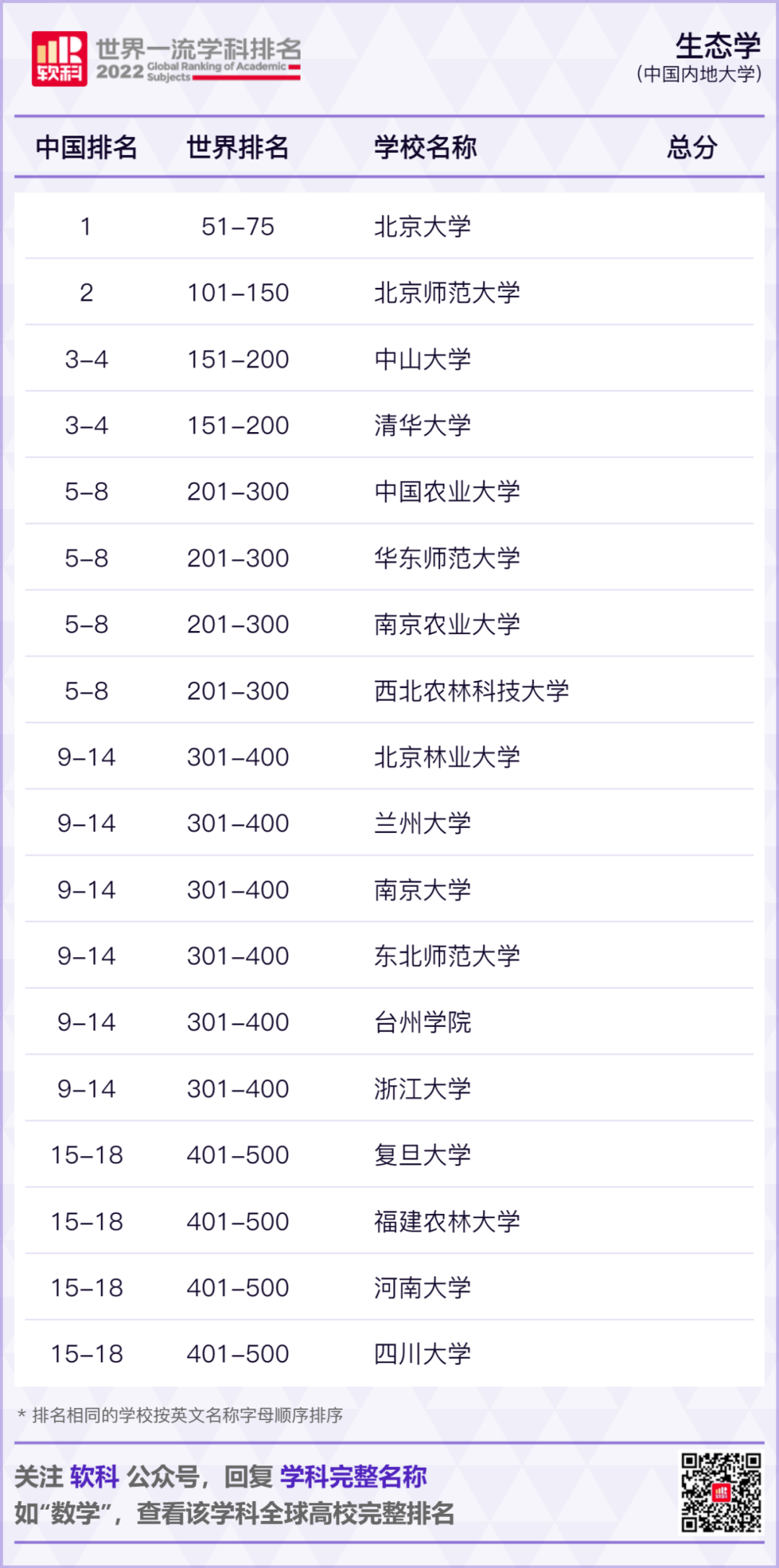 2022软科世界一流学科排名发布!