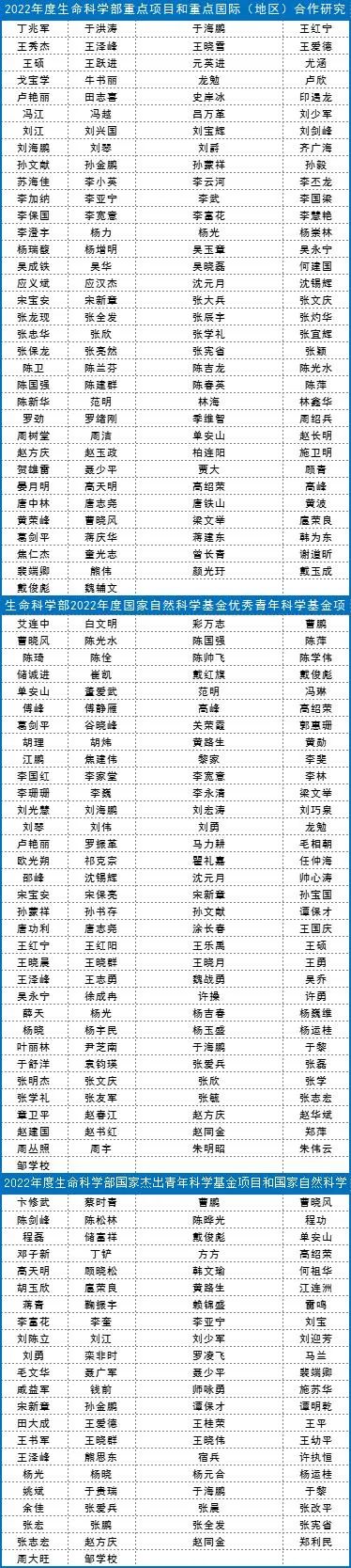 近日,自然科学基金委各学部陆续公布2022年度项目评审专家名单。