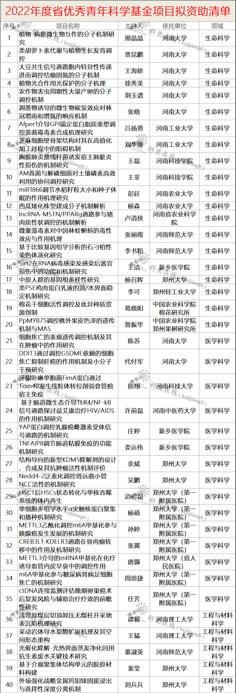 各省最新杰青、优青名单