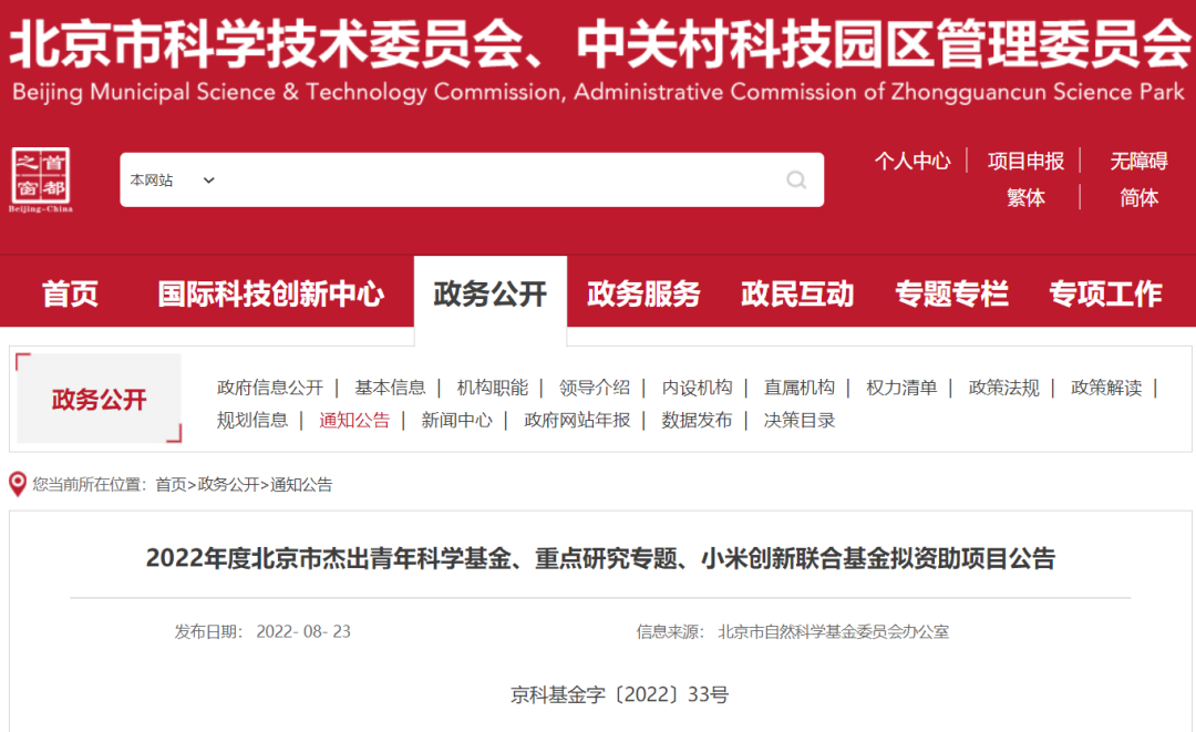 2022北京市“杰青”等项目拟资助名单出炉!