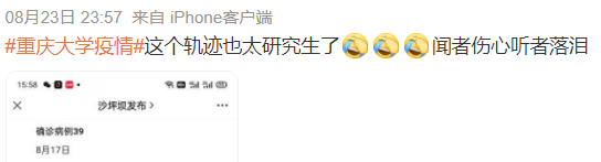 据悉,此次通报的阳性病例中,有多人轨迹涉及重庆大学,并有人为重庆大学学生。例如确诊病例39的轨迹: