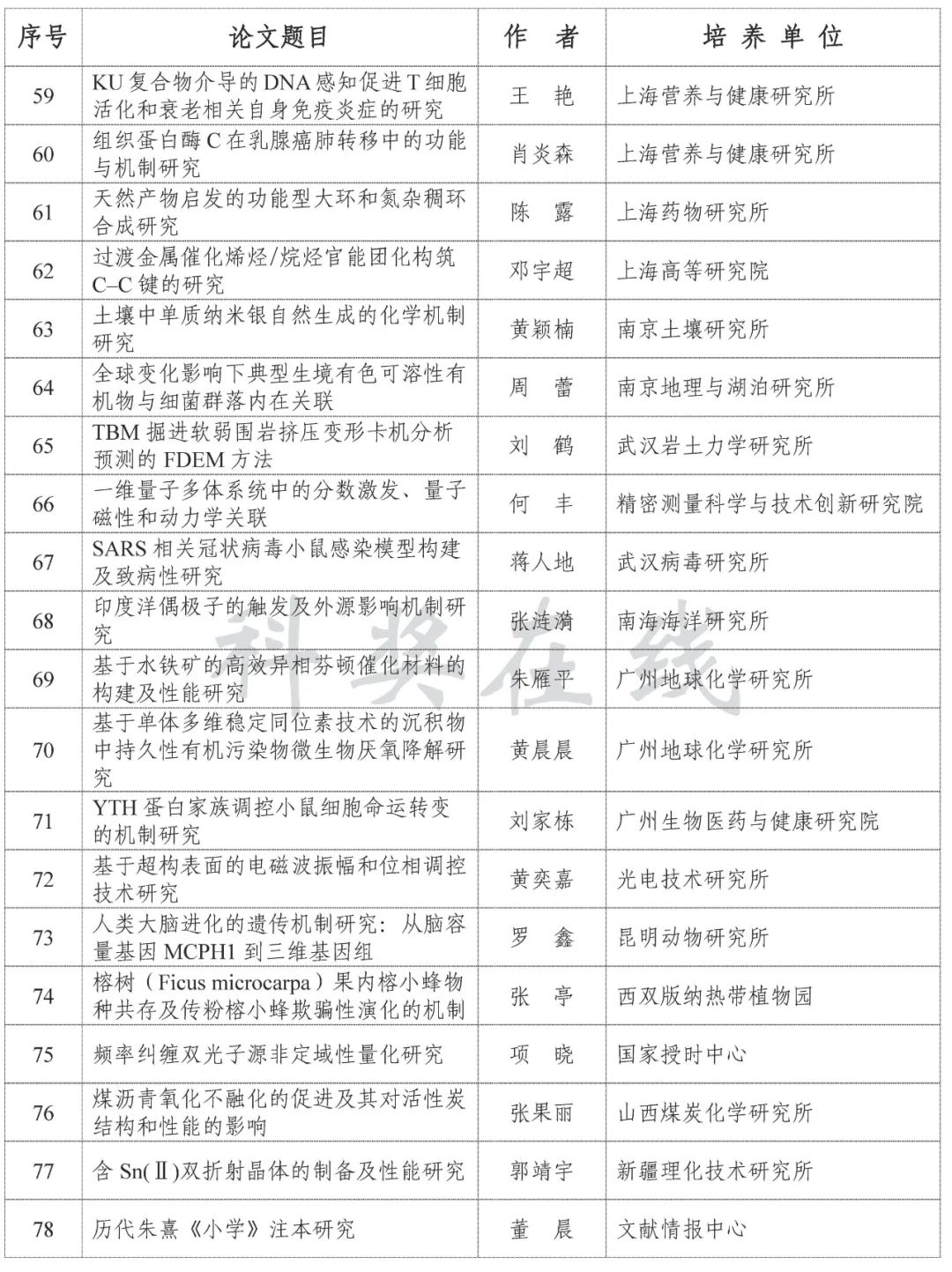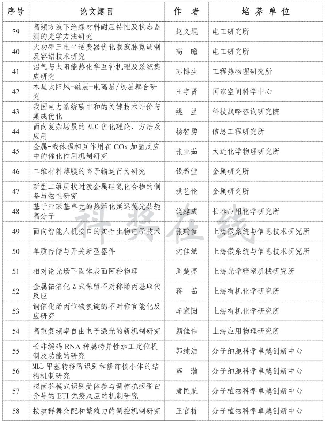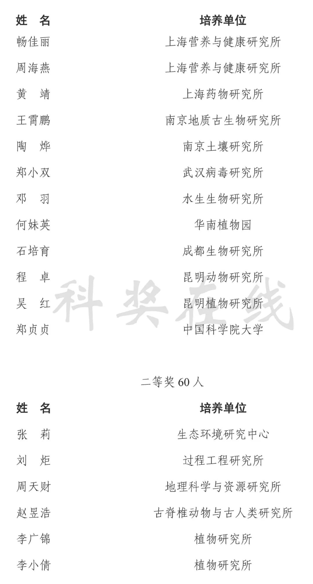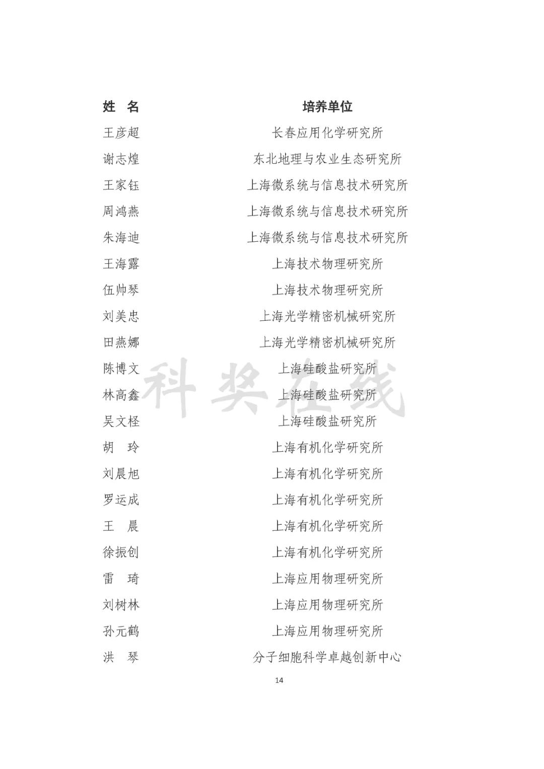 近日,中国科学院公布2022年度“中国科学院院长奖”、中国科学院优秀博士学位论文、“中国科学院优秀导师”、各项冠名奖学金评审结果,经评审,480人荣获2022年度“中国科学院院长奖”,其中王颖等80人获“中国科学院院长特别奖”,刘为等400人获“中国科学院院长优秀奖”。100篇博士论文被评为2022年度中国科学院优秀博士学位论文。173名指导教师获2022年度“中国科学院优秀导师”称号。90人获得地奥奖学金,20人获得大恒光学奖学金。获奖名单如下: