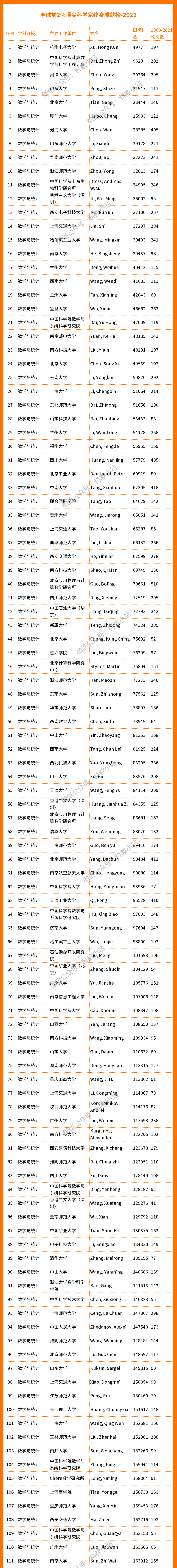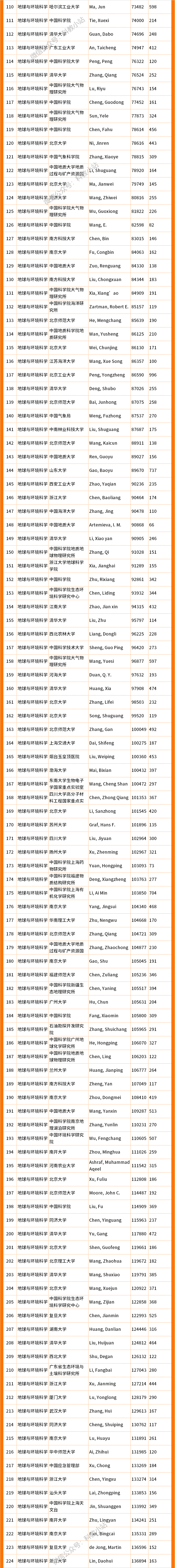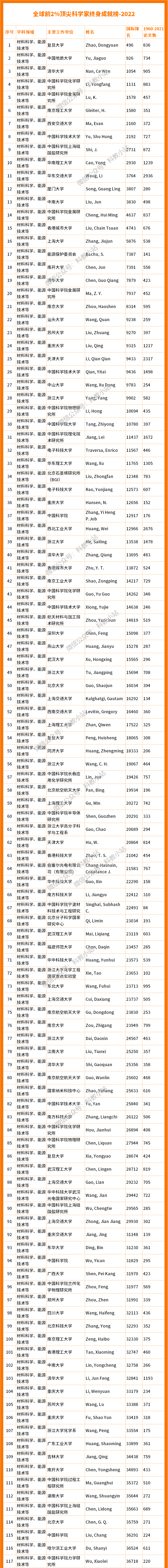 由于篇幅关系,今天仅列出国内学者的终身影响力排名情况,共有7795位国内学者入围全球前2%顶尖科学家-终身榜;