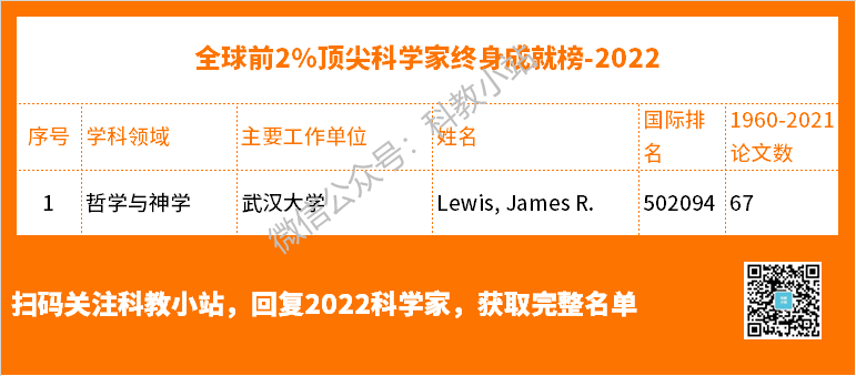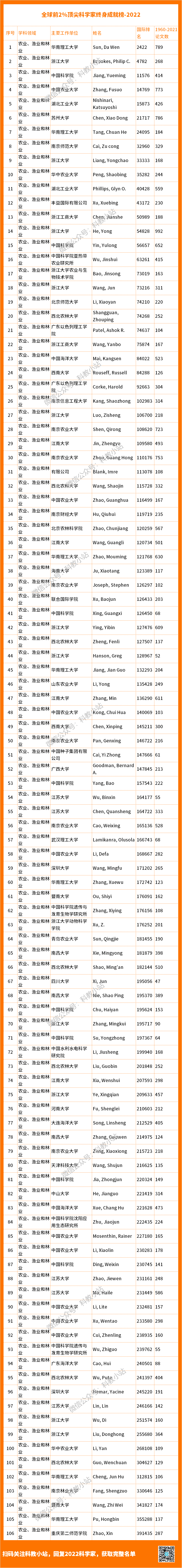 10月10日,由斯坦福大学John P.A.Ioannidis教授团队发布的全球前2%顶尖科学家榜单更新了2022年版本,这也是该团队公布的第四版本。