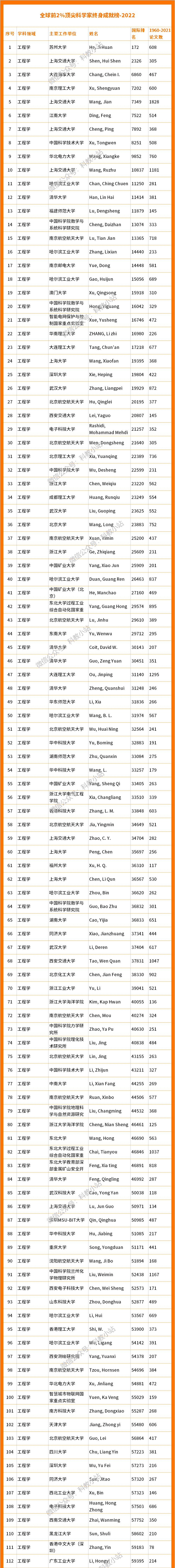 本次发布的为2022年版本,发布时间为2022年10月10日,统计数据时间节点为1960-2022年,涵盖全球200,409 位科学家。榜单主要分为“终身科学影响力排行榜(1960-2022)”和“2022年度科学影响力排行榜”两个榜单。