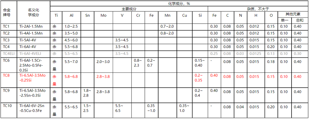 钛及钛合金牌号和化学成分表