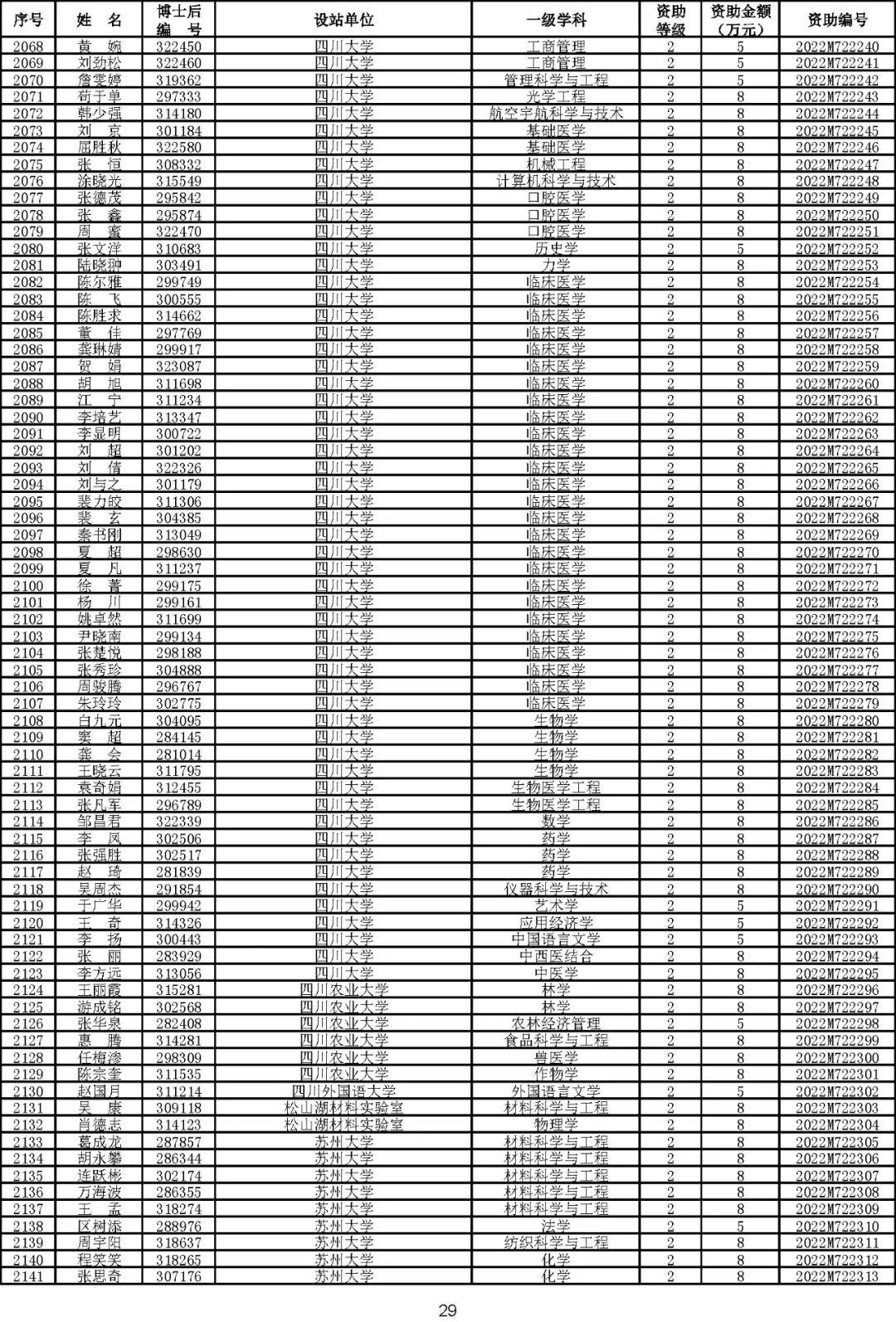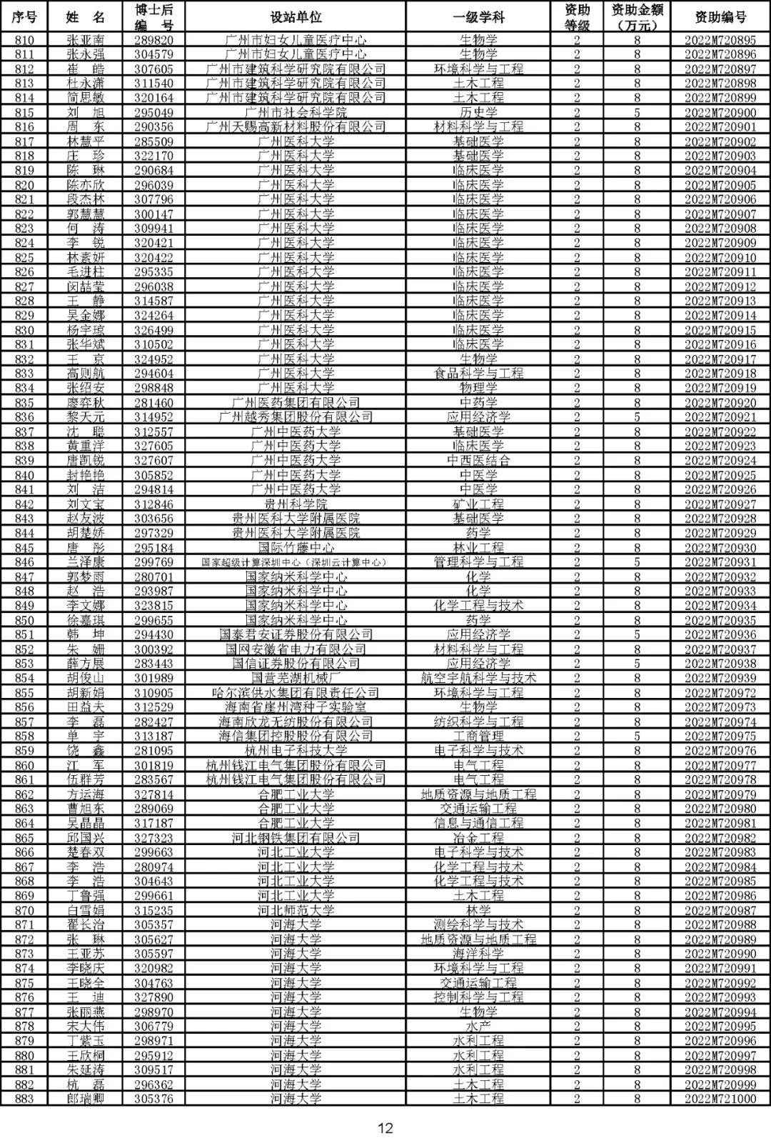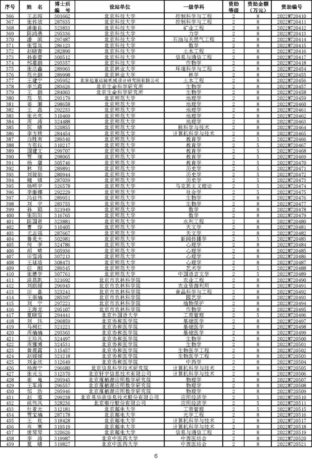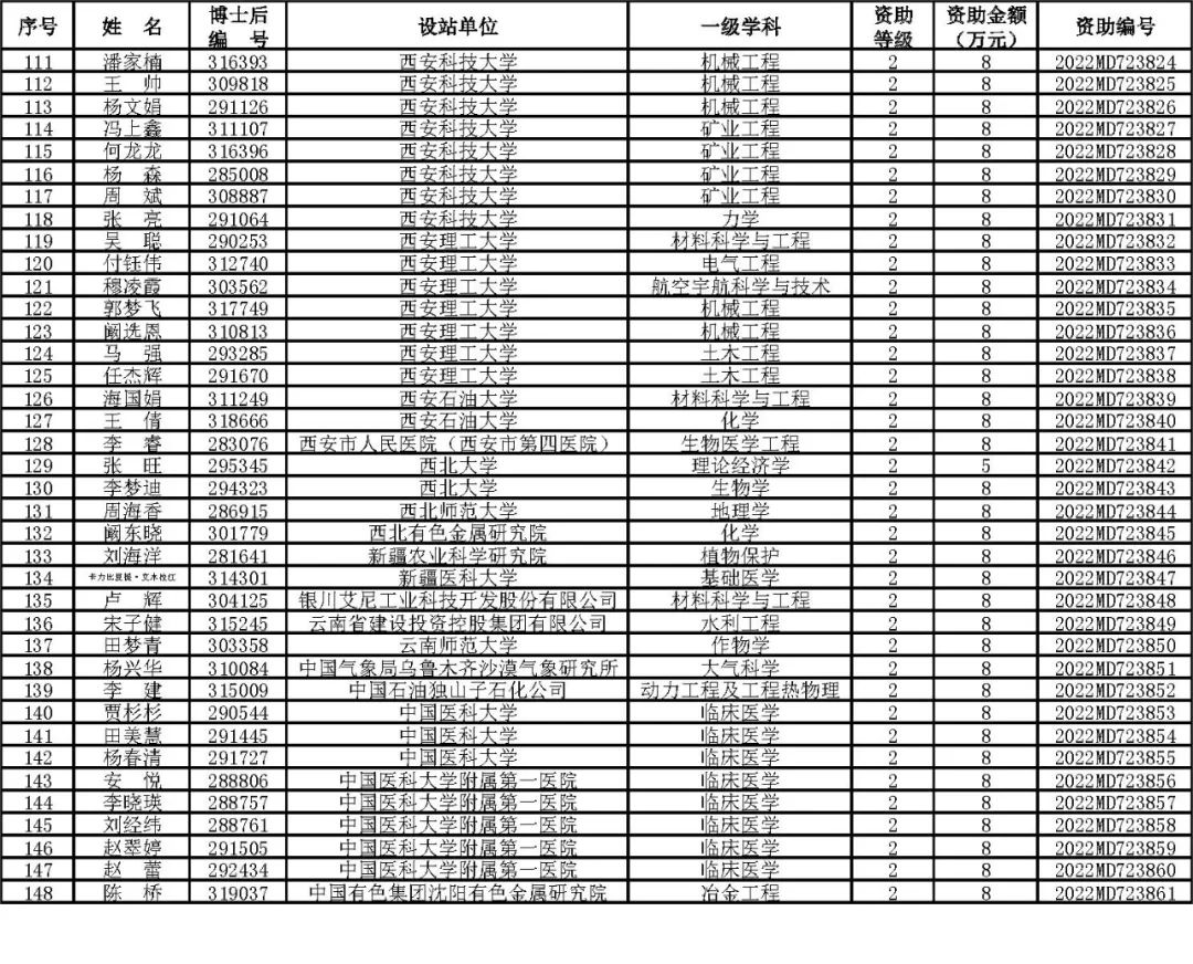 根据《中国博士后科学基金资助规定》(中博基字〔2020〕7号),经专家评审和评审结果公示,决定对3650名博士后研究人员予以中国博士后科学基金第72批面上资助(军队、国防科工等系统获资助人员不含,另行通知)。获资助人员名单详见附件。