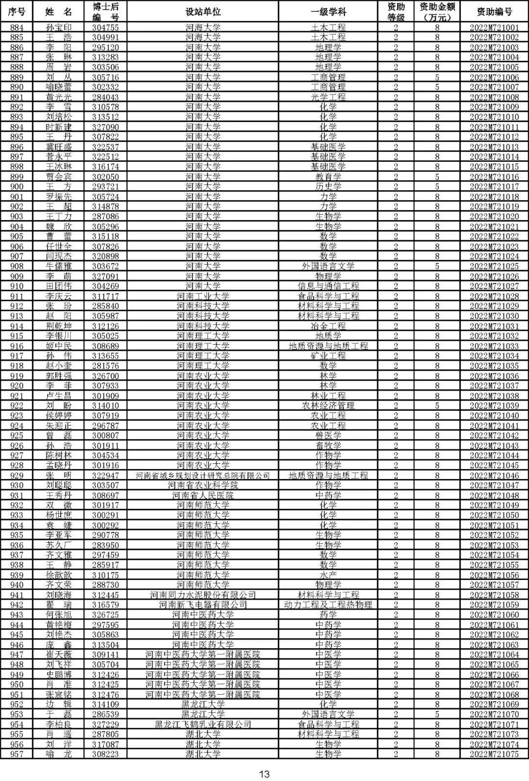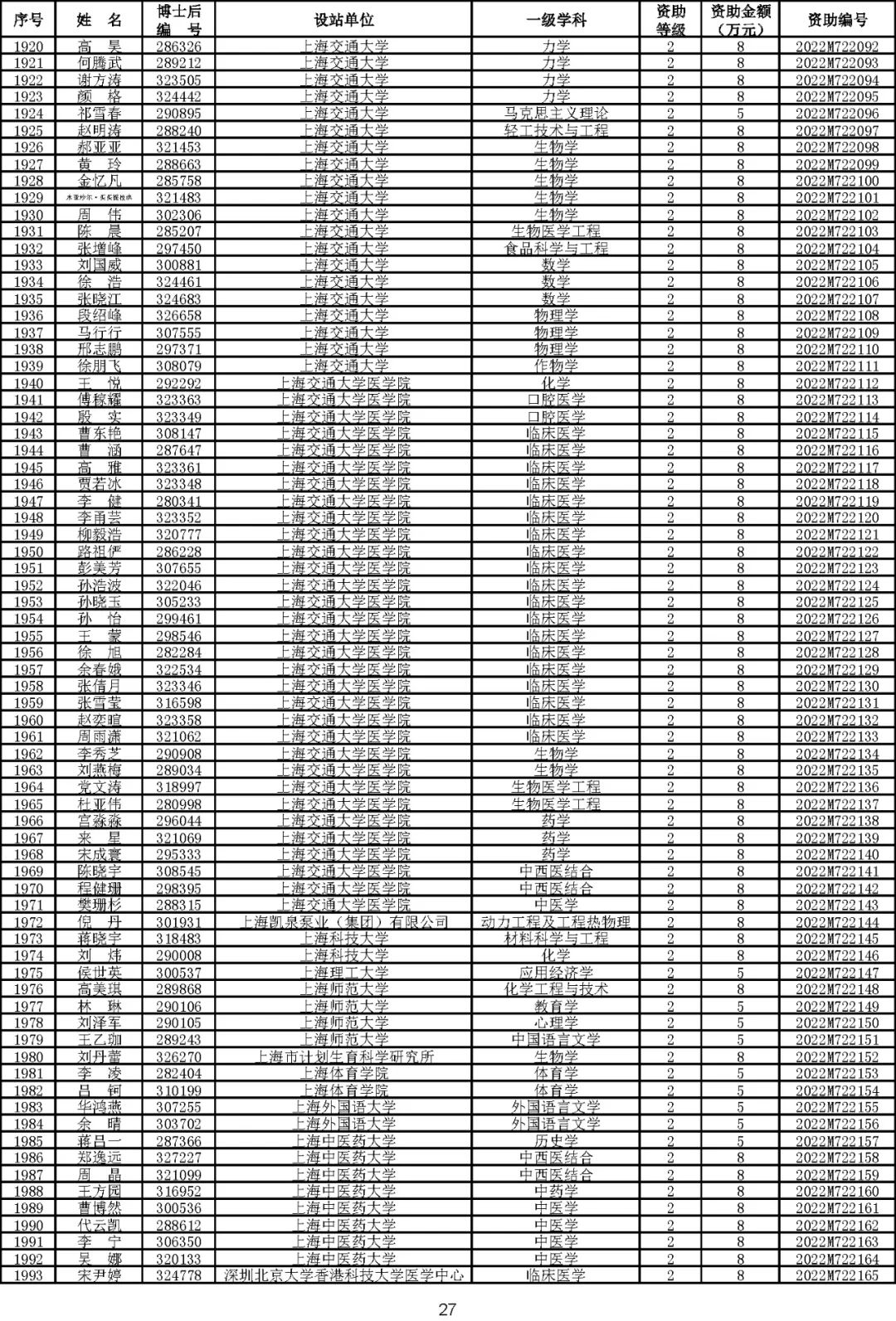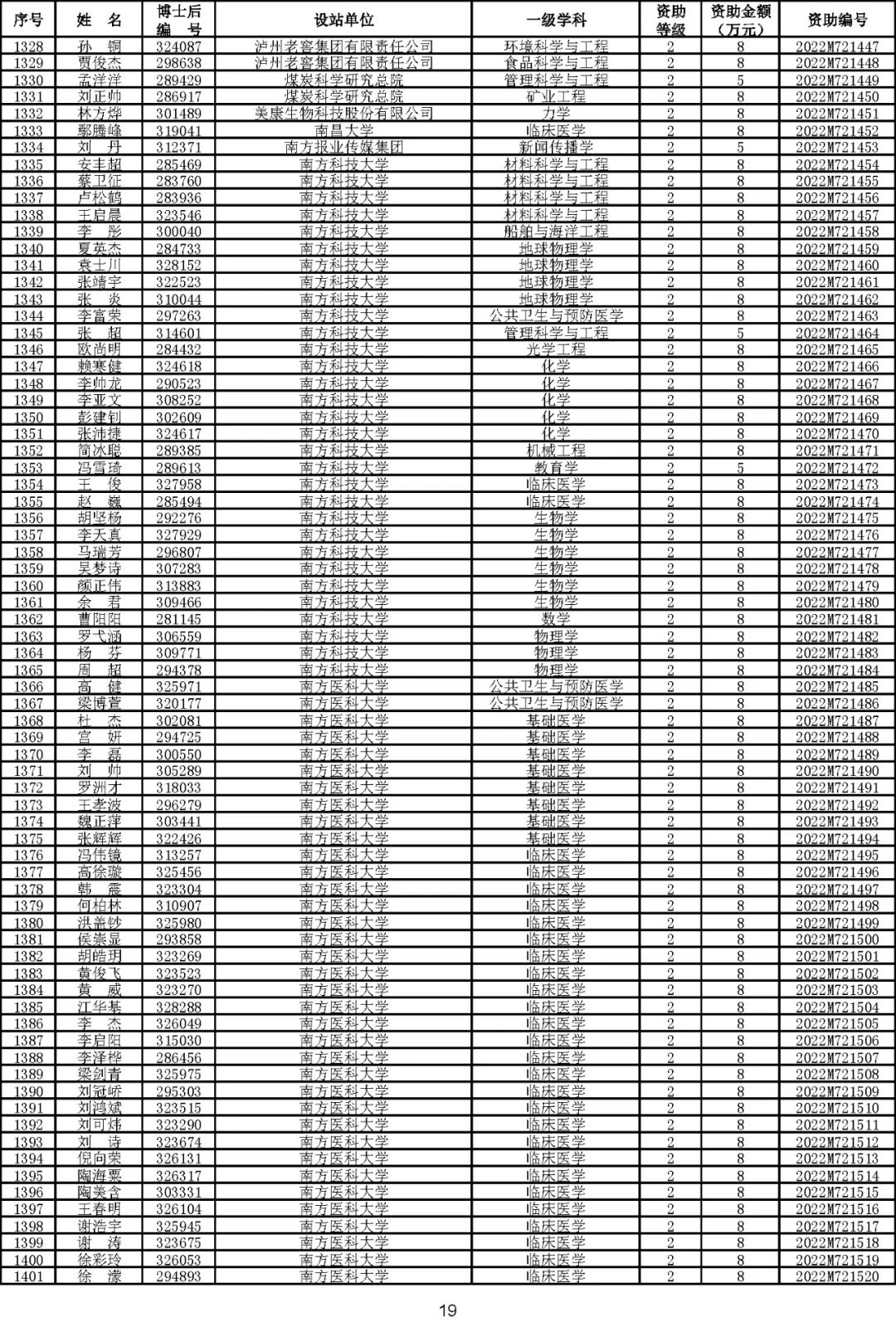 根据《中国博士后科学基金资助规定》(中博基字〔2020〕7号),经专家评审和评审结果公示,决定对3650名博士后研究人员予以中国博士后科学基金第72批面上资助(军队、国防科工等系统获资助人员不含,另行通知)。获资助人员名单详见附件。