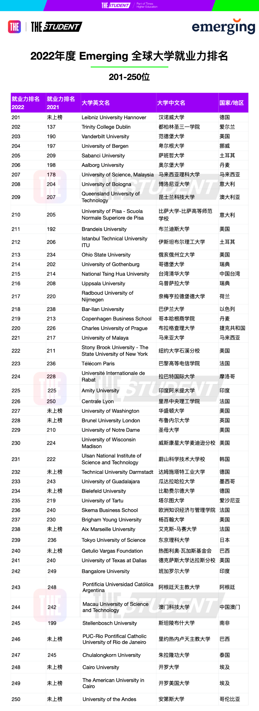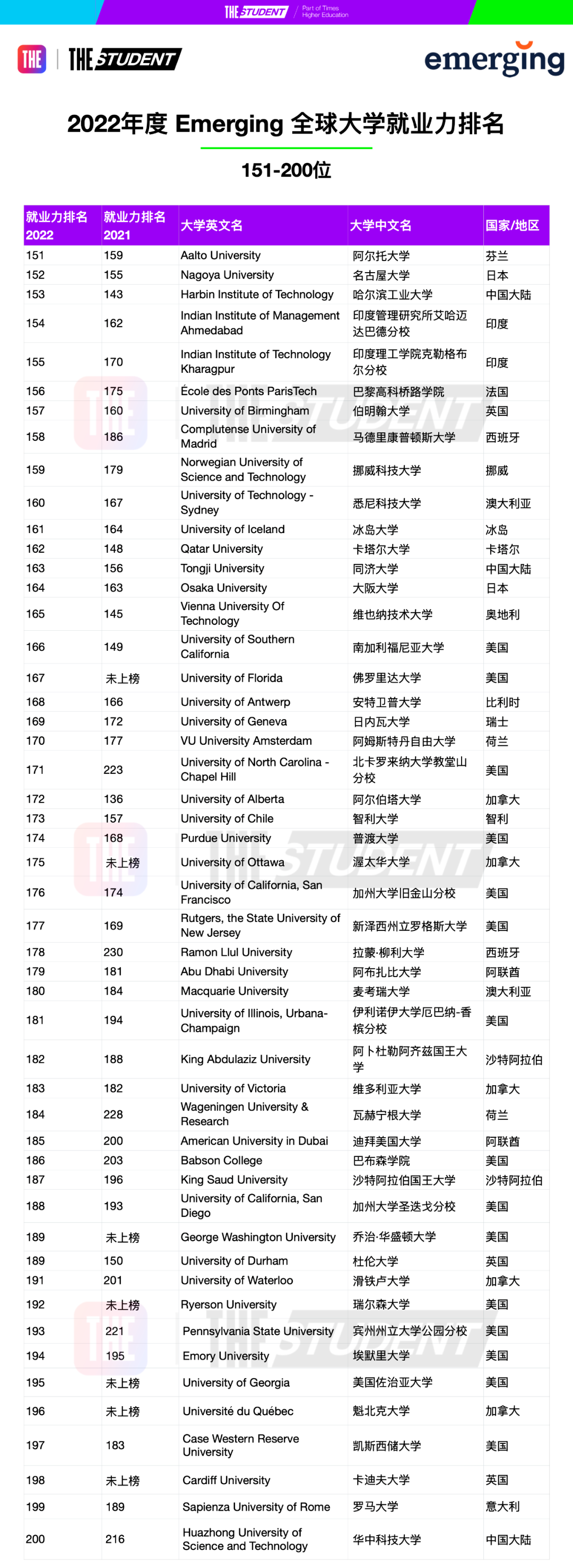 2022年度全球大学就业力排名