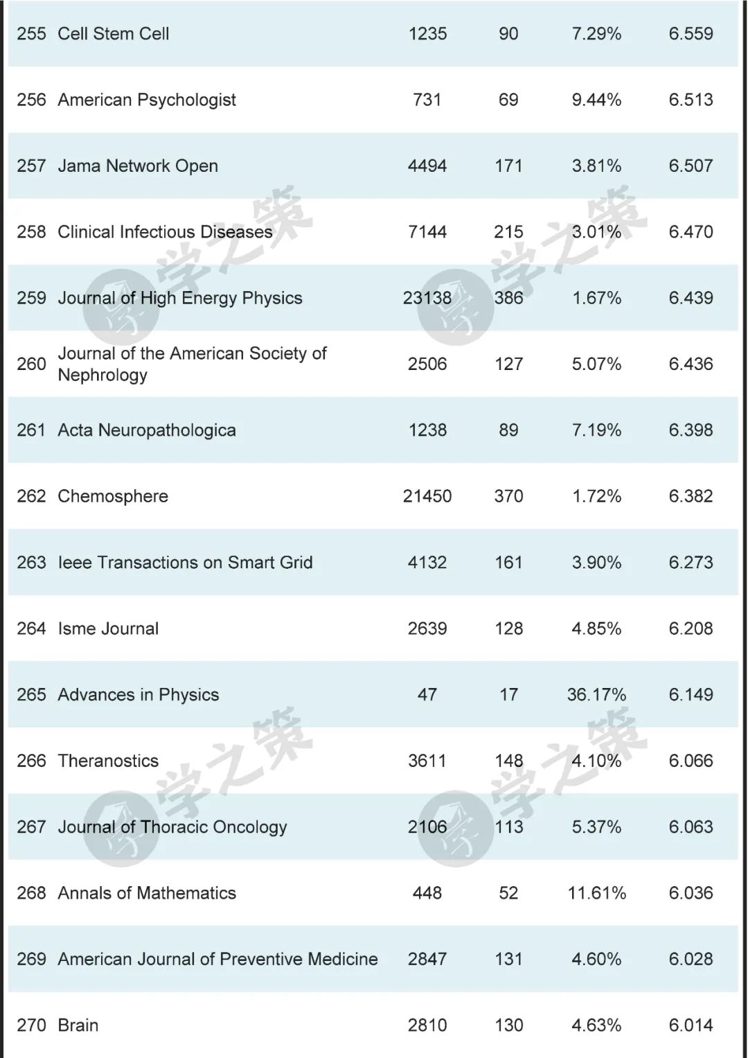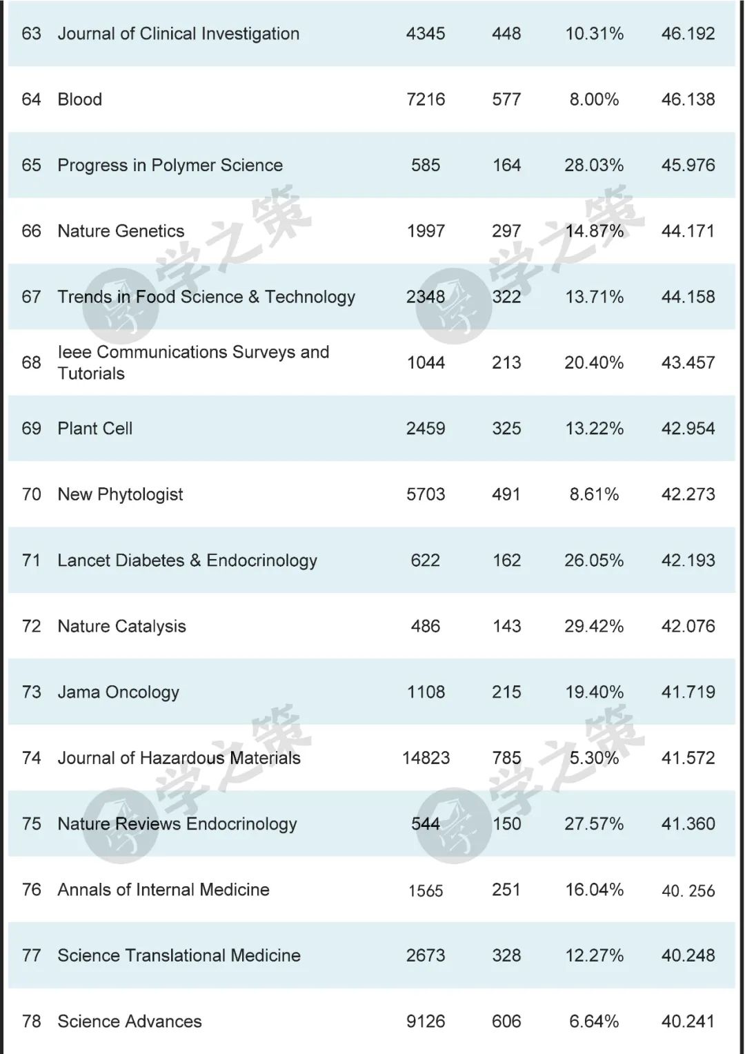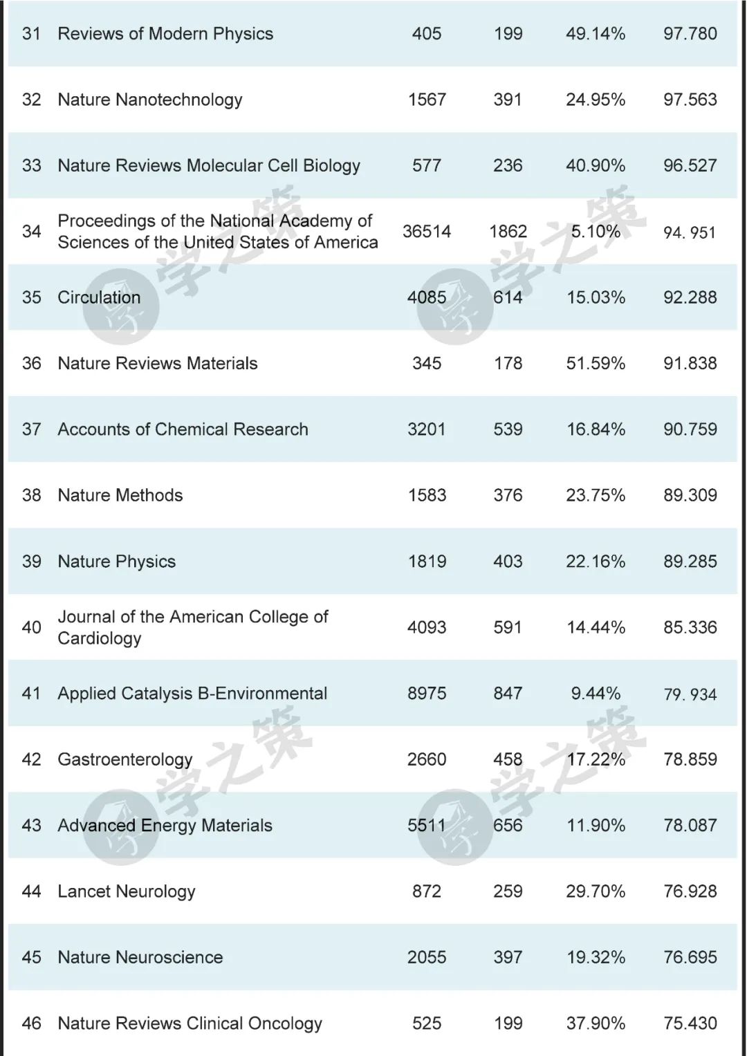 数十本Nature子刊基本都在前100之列。
