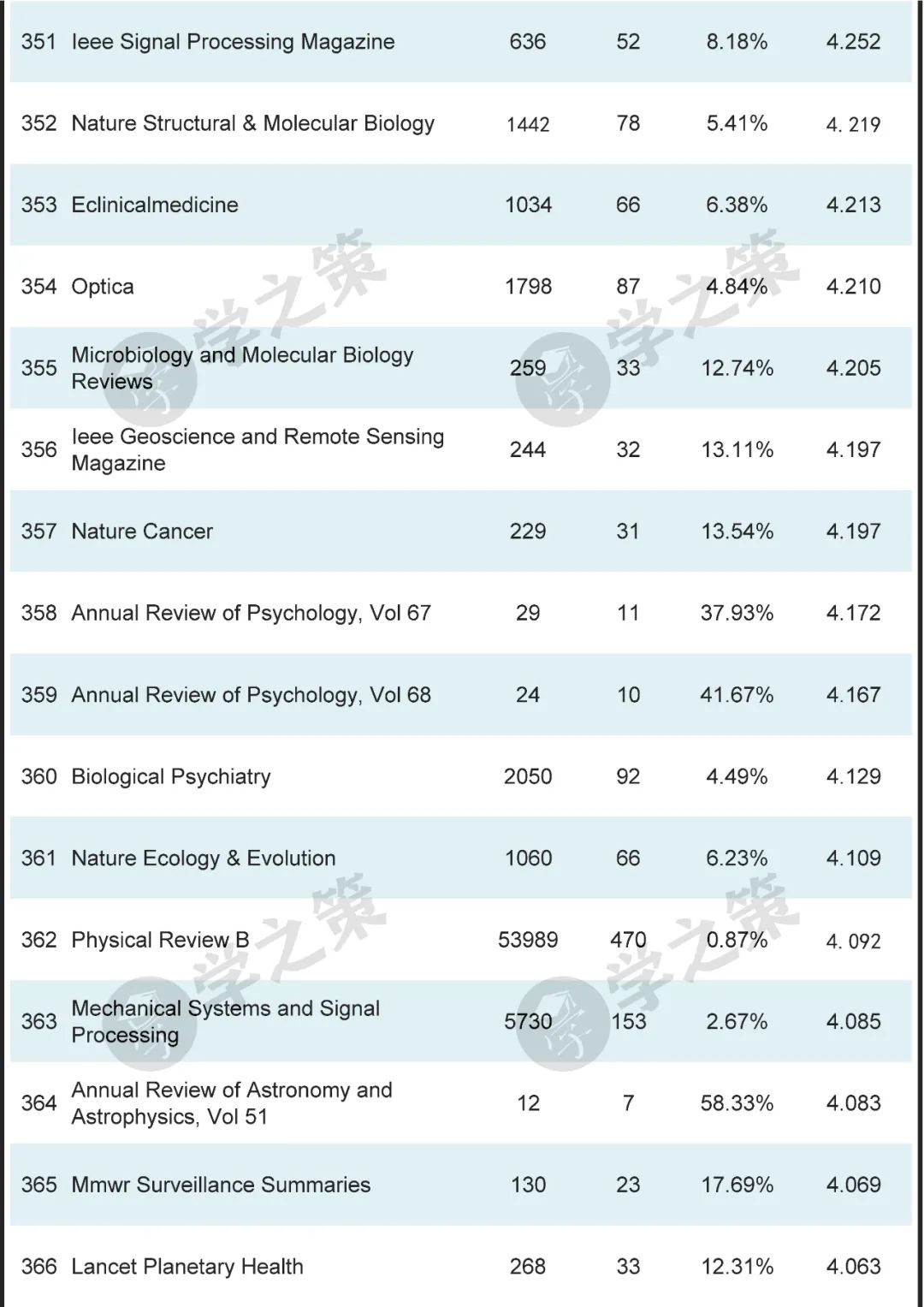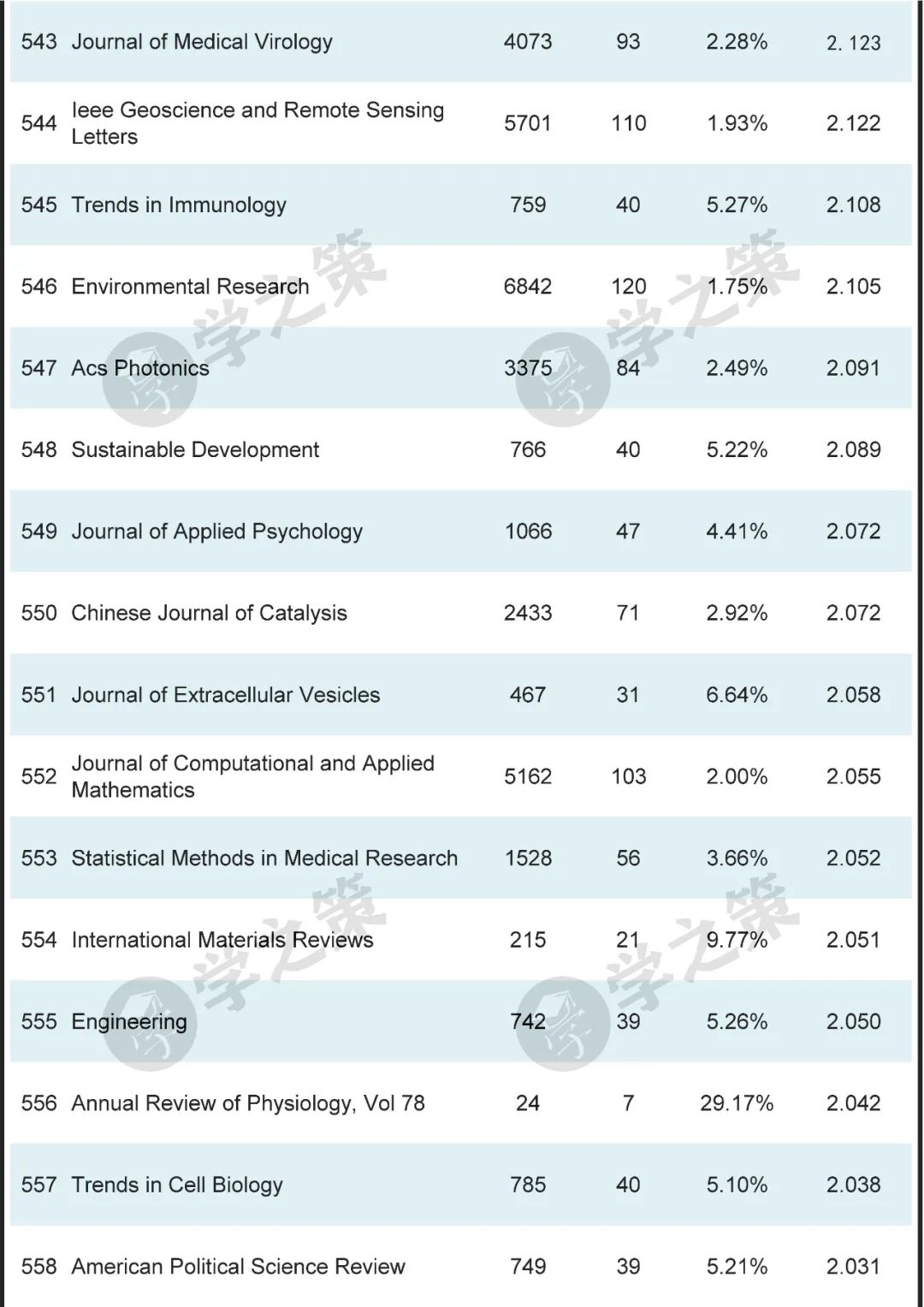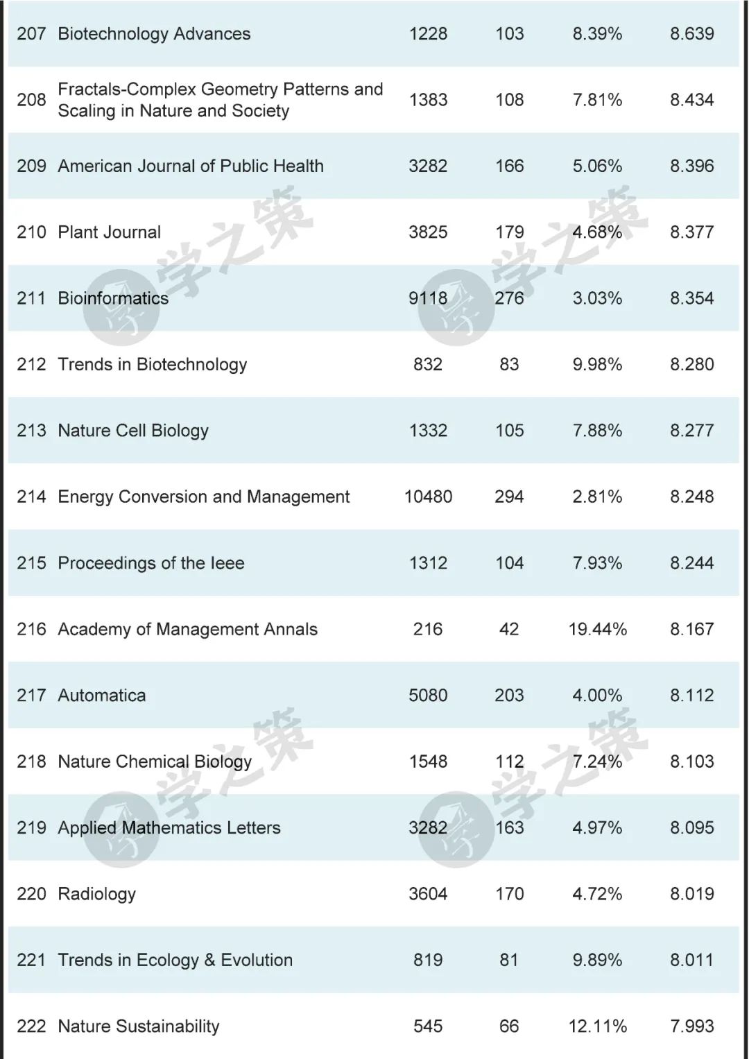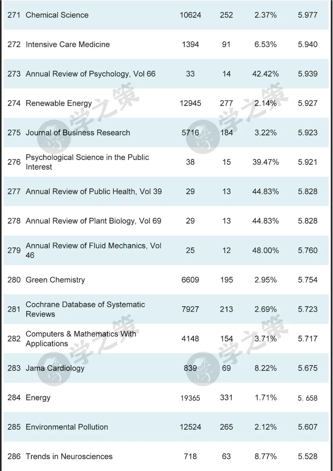 数十本Nature子刊基本都在前100之列。