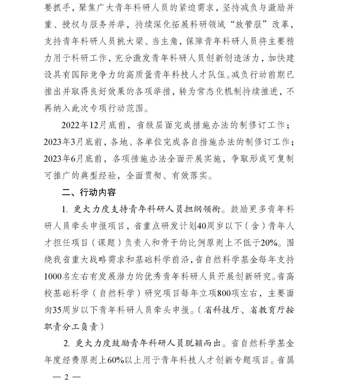 科技部等五部门发布《关于开展减轻青年科研人员负担专项行动的通知》,要解决青年科研人员面临的崭露头角机会少、成长通道窄、评价考核频繁、事务性负担重等突出问题,保障青年科研人员将主要精力用于科研工作。自通知发布以来,已有江苏、浙江、湖南、江西、海南等省市发布减负行动实施方案。