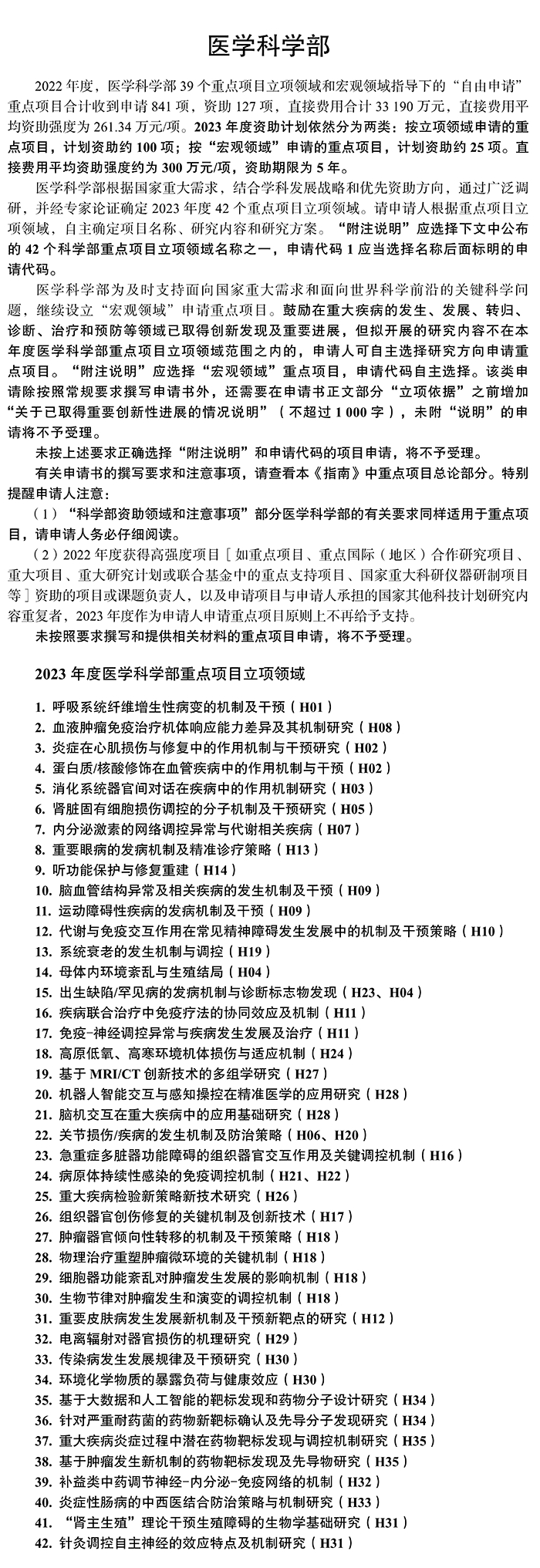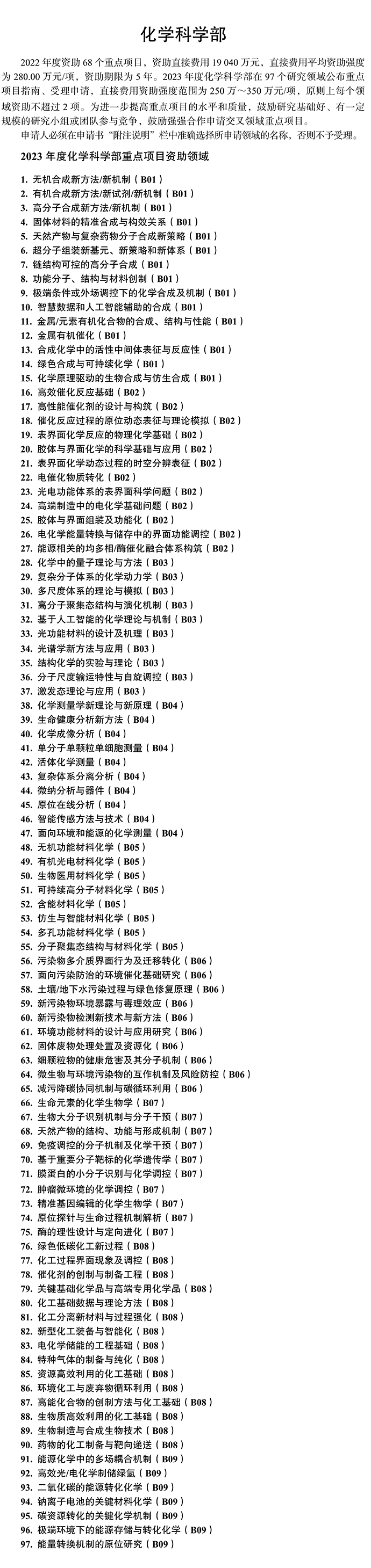 国家自然科学基金委2023年各学部重点项目优先资助领域