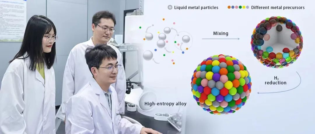 高熵合金是一种由五种或五种以上主元金属组成的新型合金,在极端条件下结构力学、能源转换与存储、医疗器械等领域具有重要的应用前景。实现高熵合金的原子级精准制造是其应用的基础。不同元素的物理化学性质差异会限制元素间的均匀混溶,不仅理想的高熵态难以获得,元素的选择也备受限制。根据吉布斯函数(),高熵合金的合成通常依赖苛刻的高温反应条件(增大因子的贡献)来克服原子间不混溶性,并通过淬火等方式保持高熵态。在温和条件下实现高熵合金的多组元原子混溶有利于其可规模化、可定制化的精准制造,而这个目标极具挑战。