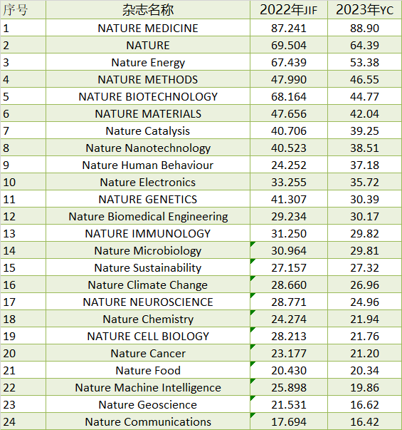 我们比较关注的一些 Nature 及子刊,总体上保持稳定,影响因子最高的还是Nature Medicine(非综述类) 。