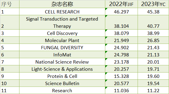对于国产期刊,我们发现Cell Research 影响因子预计为45,保持相对稳定,Signal Transduction and Targeted Therapy 预测影响因子能超过40;Molecular Plant 预测能过25,这可能是所有植物非综述类杂志影响因子最高的杂志。不过,部分国产杂志发表了过多的综述以及Letter类的文章,相比于其他杂志,还有进一步提升的空间。