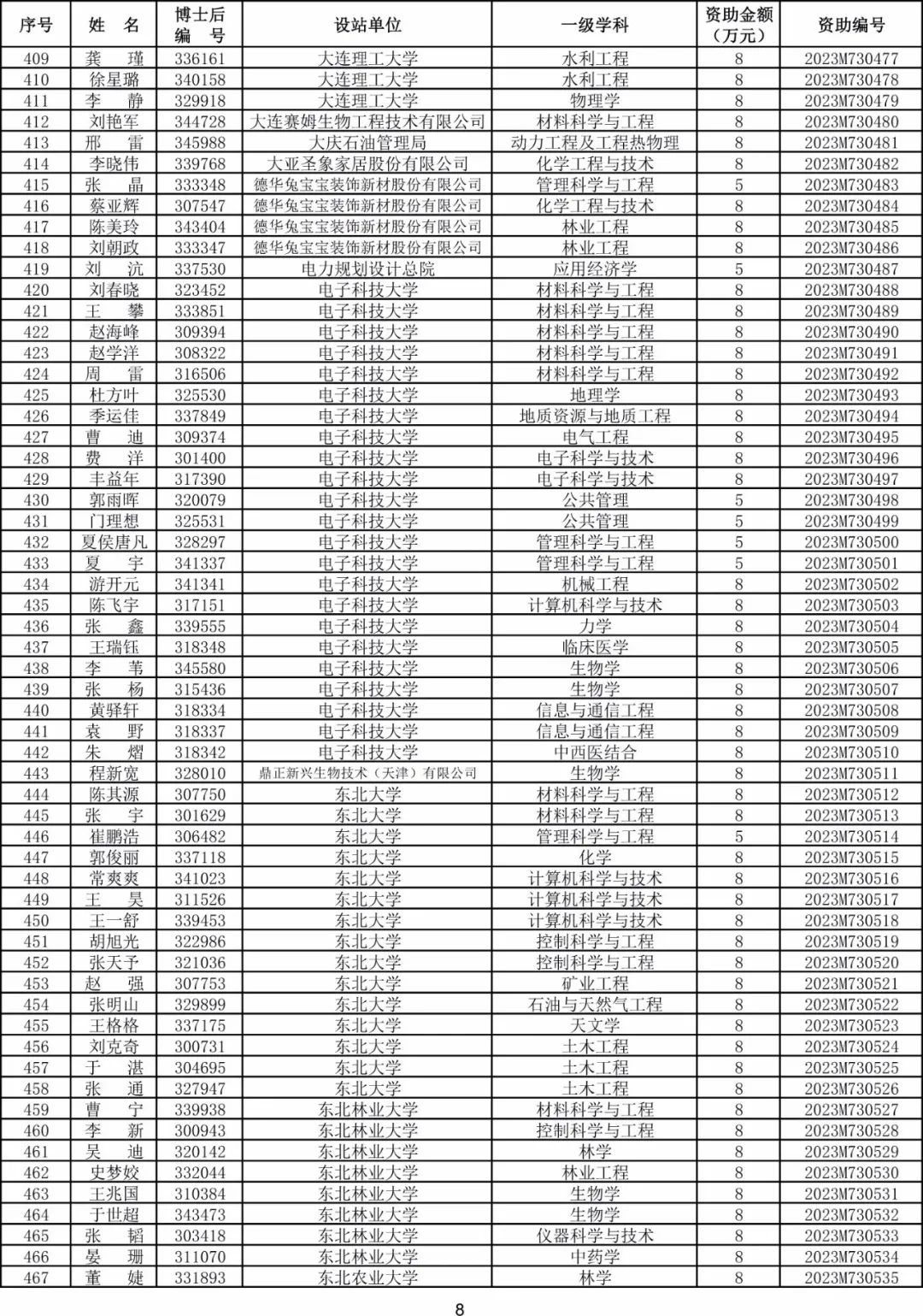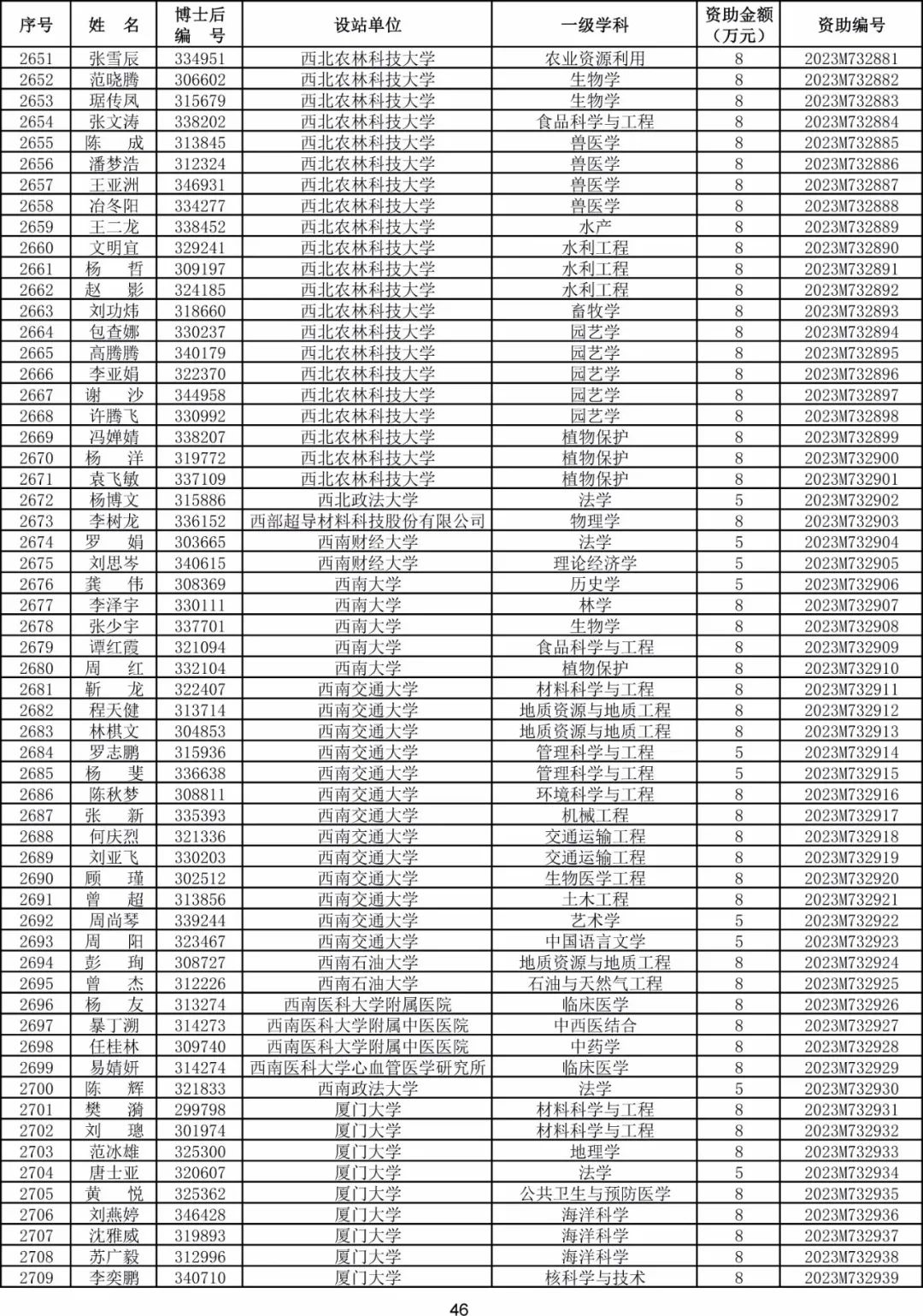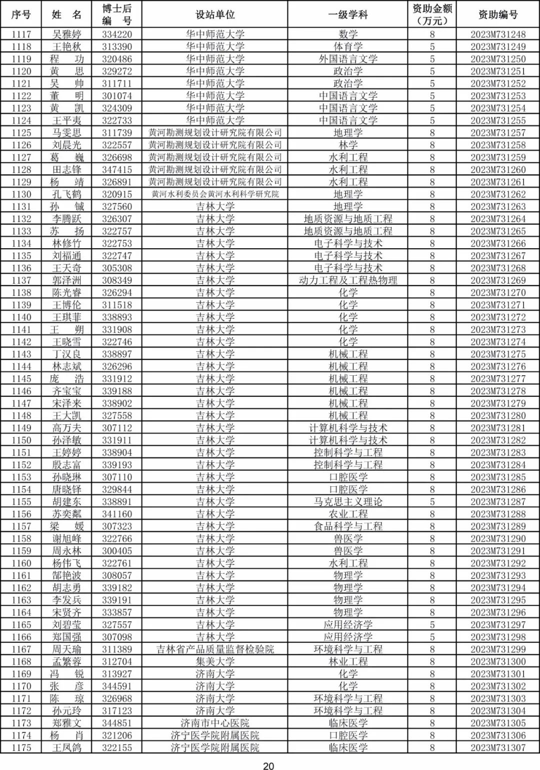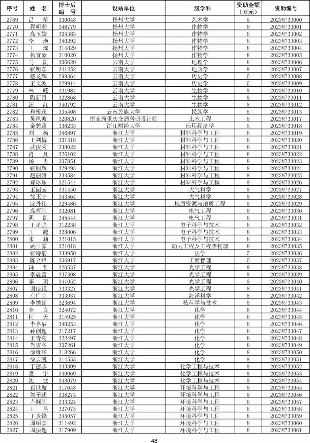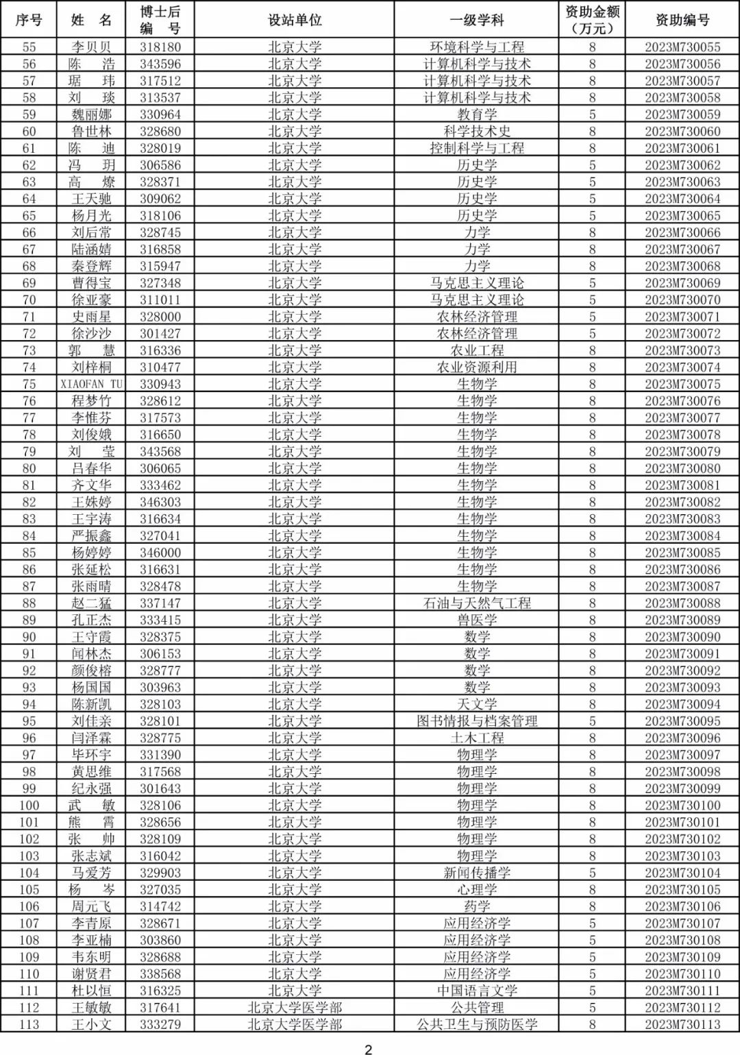 根据《中国博士后科学基金资助规定》(中博基字〔2020〕7号),经专家评审和评审结果公示,决定对4003名博士后研究人员予以中国博士后科学基金第73批面上资助(军队、国防科工系统获资助人员不含,另行通知)。获资助人员名单详见附件。