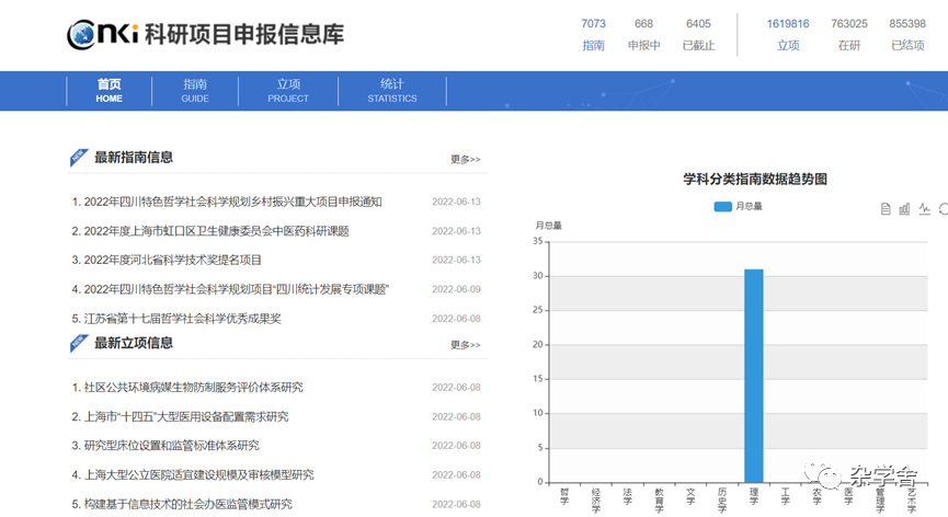 国家级和省级自然科学基金立项项目、社会科学基金立项项目(包括立项、指南及统计分析)。