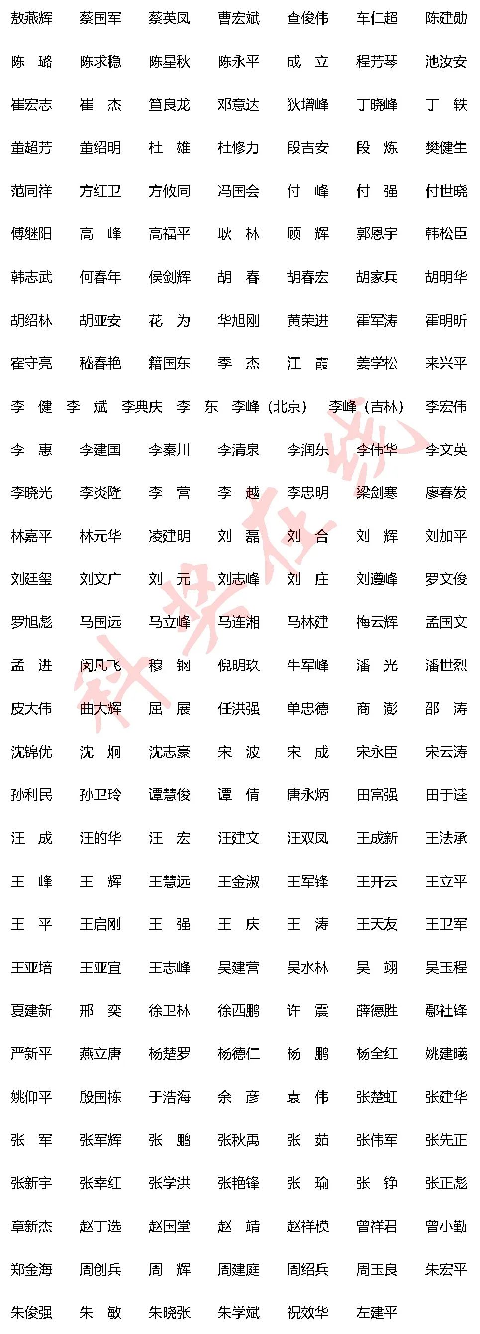 曹流、曹鹏、曹维、曹中炜、曾辉、常俊标、常永生、陈罡、陈厚早、陈吉华、陈兰芬、陈林、陈旻、陈佺、陈士林、陈填烽、陈晓春、陈新文、陈义汉、陈悦、程涛、程翔、慈维敏、崔勇、邓伟豪、丁霞、董家鸿、董小平、董忠军、董子钢、杜冠华、杜杰、杜亚楠、范志朋、冯世庆、高成江、高光侠、高平、高绍荣、高兴华、戈惠明、苟德明、官大威、管又飞、郭德银、郭非凡、韩梅、郝飞、何玉先、侯增广、胡小玉、胡颖、黄波、黄园、黄志纾、季红斌、贾宝庆、江军、江陆斌、江鹏、蒋兴宇、鞠振宇、康九红、蓝柯、郎靖瑜、雷群英、冷晓萍、黎孟枫、黎胜红、李慧艳、李平、李平平、李晓波、李亚平、李延青、李于、梁广、梁萍、梁廷波、梁兴杰、廖端芳、林旭、刘宝华、刘翠华、刘光慧、刘红、刘胡丹、刘良、刘良明、刘林、刘万里、刘文、刘喆、刘芝华、刘志强、陆路、罗高兴、罗阳、吕毅、马春红、宁文、欧启水、潘欣、彭成、齐湘兵、钱民先、钱友存、钱志勇、卿国良、屈军乐、饶燏、阮雄中、沈定刚、沈璐、施小明、史冬泉、史玉玲、帅克、宋锦璘、宋伟宏、苏枭、孙宏晨、孙青原、孙瑶、唐承薇、唐仕波、汪静、汪凯、汪南平、汪洋、王晨辉、王恒樑、王建祥、王健、王阶、王金勇、王婧、王立平、王平、王前飞、王擎、王秋菊、王喜军、王晓虹、王拥军、王振常、翁建平、翁杰敏、吴南、吴玉章、席波、夏宁邵、项鹏、肖俊杰、邢金良、熊思东、徐安龙、徐洋、许琛琦、许琪、薛天、严景华、杨宝峰、杨黄恬、杨磊、杨明会、杨鹏远、杨晓、于舒洋、余佳、虞朝辉、臧玉峰、战丽彬、张峻峰、张磊、张蓬勃、张声生、张万起、张维娜、张向阳、张烜、张志荣、招明高、赵晨、赵金存、赵强、赵长青、郑海荣、郑宏庭、郑晖、郑玉新、周荣斌、周翔天、朱立国、朱明昭、邹卫国、邹云增