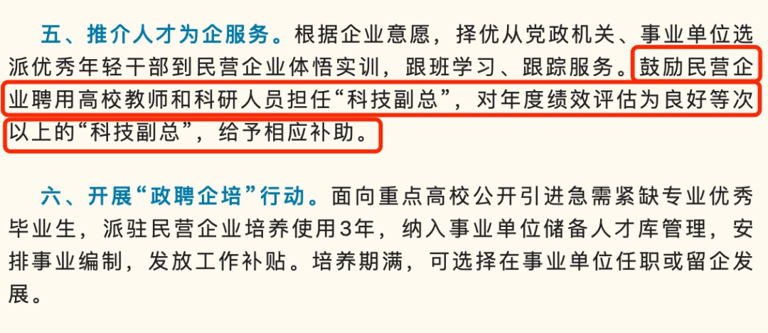 2022年底,山东省德州市人民政府明确提到“允许科研人员和高校教师依法依规适度兼职兼薪”。今年2月,安徽省宣城市发布通知,鼓励民营企业聘用高校教师和科研人员担任“科技副总”,并给予相应补助,预计一位“科技副总”一年到手十几万元起。