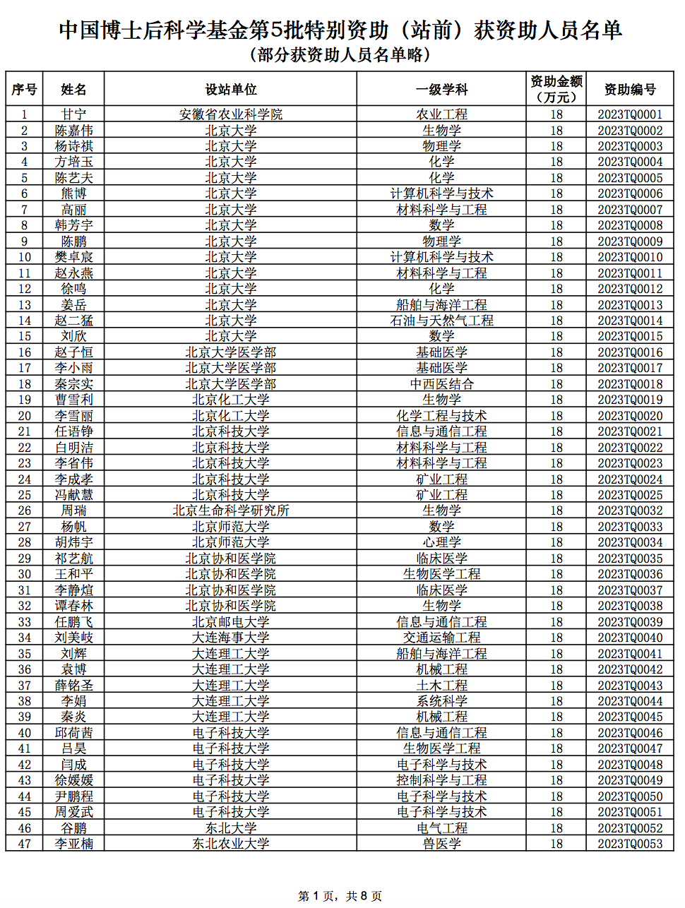 中国博士后科学基金第5批特别资助(站前)获资助人员须在本通知下发之日起三个月内进站,逾期视为自动放弃资助资格。此前,公示名单中,中国博士后特别资助项目共有1200项入围,意味着共有8项未通过公示。