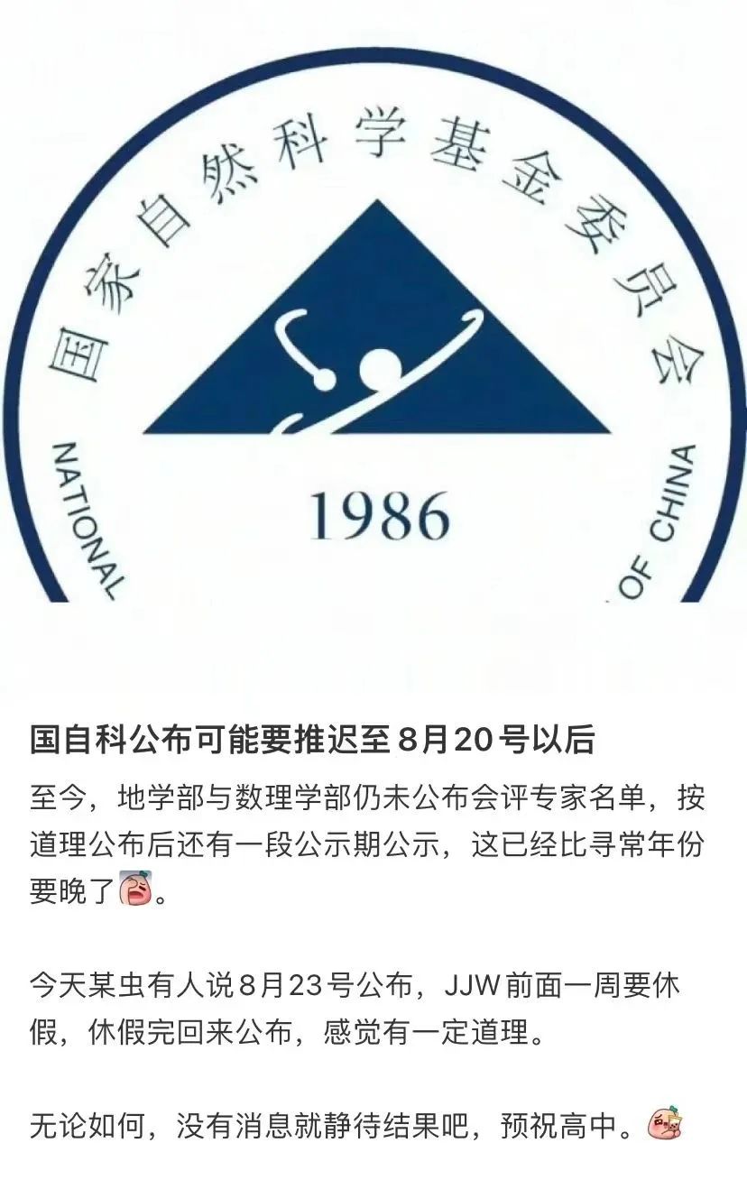 国自然公布时间越来越近了,大家普遍关心今年国自然的具体公布时间。每到 8 月,网络上关于公布时间的猜测一时间吵得沸反盈天。