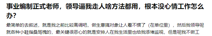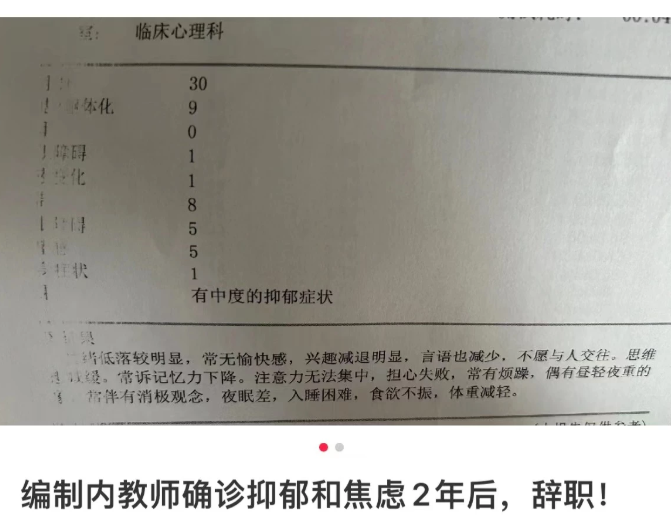 在这个话题相关的帖子中,不少体制内教师提到自己:确诊抑郁症,焦虑症,工作压力大,评不了职称,钱少,科研几乎停滞,无用的会议太多,领导长期PUA……