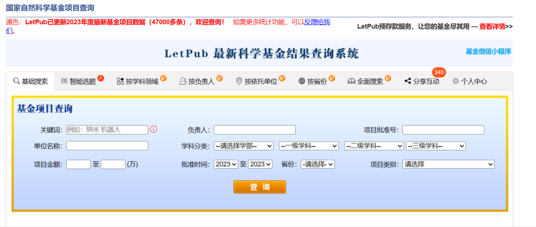 详情具体可注册登录网站http://www.letpub.com.cn/index.php?page=grant 查询。