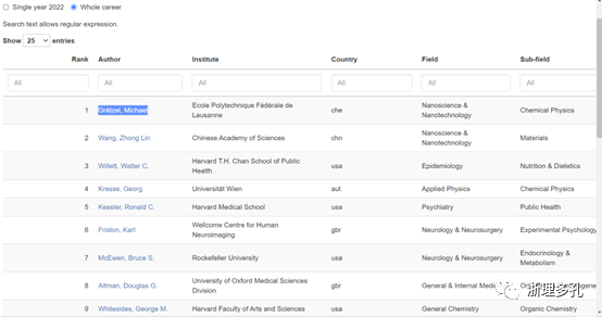点击网页地址,输入姓名或者机构名称进行查询,姓名输入格式如:Gao, Junkuo (排名47841)