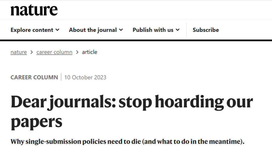 《Nature》发文呼吁:"禁止一稿多投"该废止了!