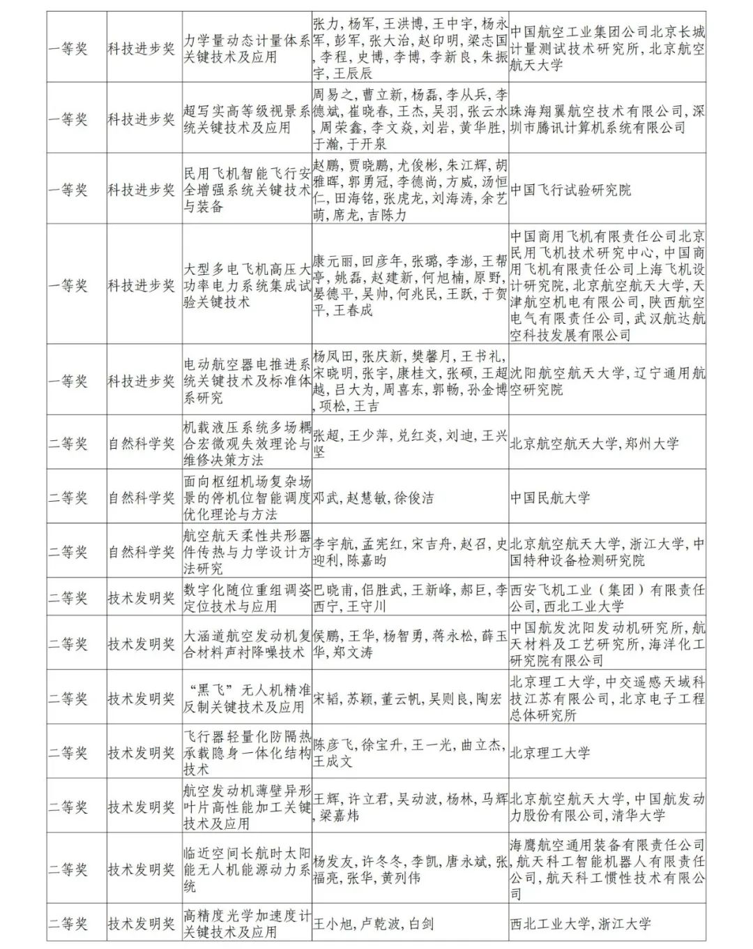 2023年度“中国航空学会科学技术奖”评审结果公示