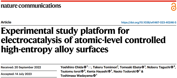 日本东北大学环境研究院Yoshihiro Chida团队提出了一个实验研究平台,可以在真空中合成原子级可控的单晶高熵合金表面,并评估其催化性能。该平台提供了对电催化的微观结构基础至关重要的基本信息,即多组分合金表面微结构与其催化特性之间的详细关系。在低指数单晶Pt基衬底(Pt/Cr-Mn-Fe-Co-Ni/Pt(hkl))上合成了纳米厚的Pt和等原子比Cr-Mn-Fe-Co-Ni外延堆垛层,即所谓的Cantor合金,作为氧还原反应(ORR)电催化的Pt基单晶合金表面模型。与Pt-Co二元表面相比,高熵合金表面具有更优异的氧还原反应性能,从而证明了该平台的实用性。该研究以题为“Experimental study platform for electrocatalysis of atomic-level controlled high-entropy alloy surfaces”发表在知名期刊Nature Communications上。