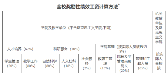 华南农业大学奖励性绩效工资计算方法 * 此表作为学校核拨经费的计算方法,而非各单位分配的依据。截图自华南农业大学网站