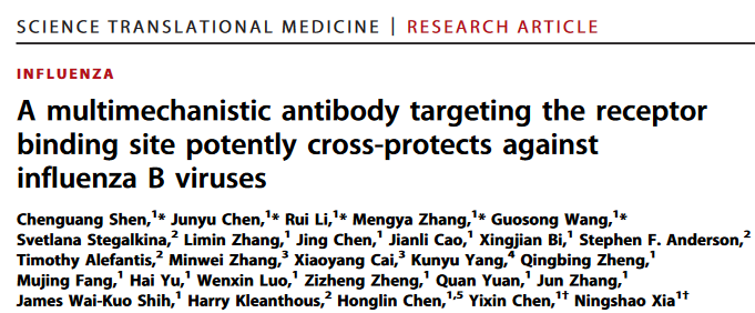 Sci. Translational Med.:可对抗乙型流感的新型抗体