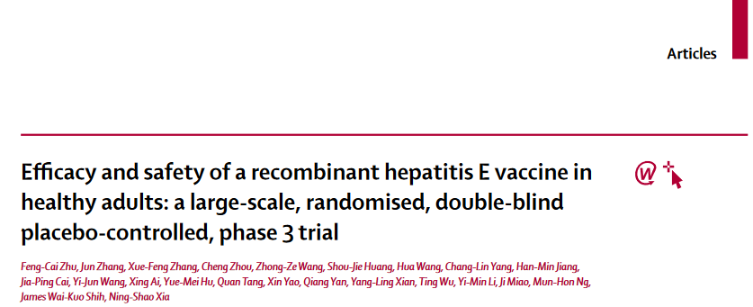 Lancet:重组戊型肝炎疫苗在健康成人群中的有效性和安全性